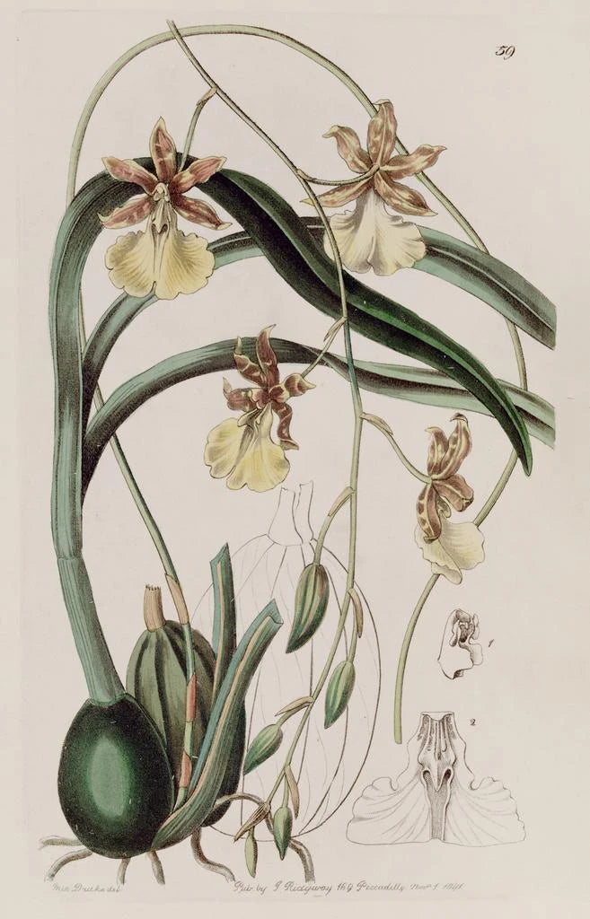 Sydenham Edwards, botanisk illustratør fra begyndelsen af det 19. århundrede, markerede sin tid med sine bidrag til videnskabelig illustration. Hans værker, der kombinerer præcision og kunstnerisk følsomhed, spillede en nøglerolle i dokumentationen af plantearter. Påvirket af de botaniske opdagelser i sin tid, formåede han at fange skønheden i planterne, samtidig med at han respekterede deres videnskabelige struktur. "Le Curvelip à tige filiforme" er et perfekt eksempel på hans talent, der kombinerer stringens og æstetik. Hans arv består, og inspirerer kunst- og botanikkentusiaster gennem generationer.