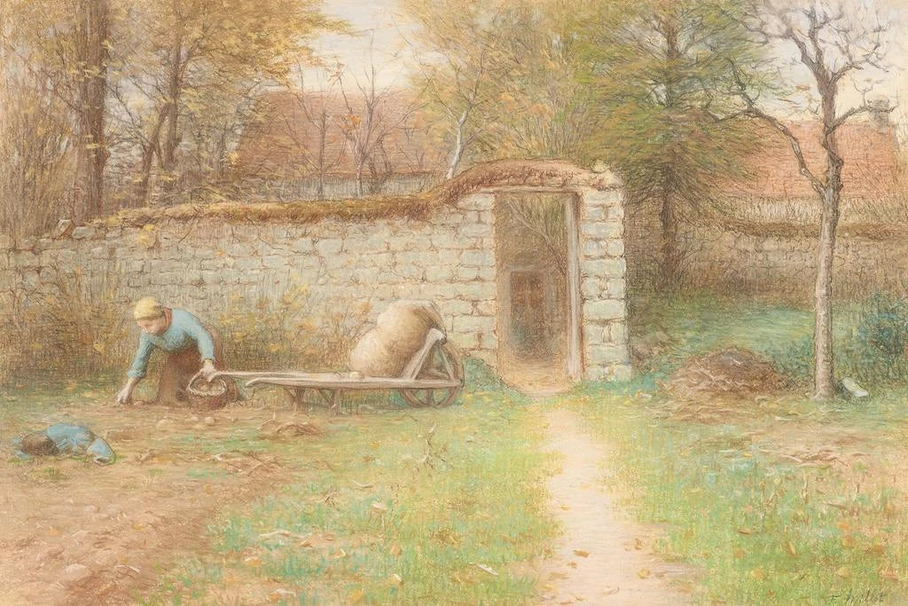 Jean-François Millet, en ikonisk figur i den realistiske bevægelse, formåede at fange det landlige liv med en unik følsomhed. Født i 1814 i Frankrig, blev han påvirket af landskaberne fra sin barndom og af landmændenes kampe. Millet var en af de første kunstnere, der fremhævede arbejderens værdighed, hvilket markerede et vendepunkt i 1800-tallets kunst. Hans værker, ofte præget af melankoli, vidner om en tid, hvor landligheden var under forandring i mødet med industrialiseringen. "Den gamle hus i Barbizon" indskriver sig i denne søgen efter sandhed, og hylder skønheden i dagligdagens scener.