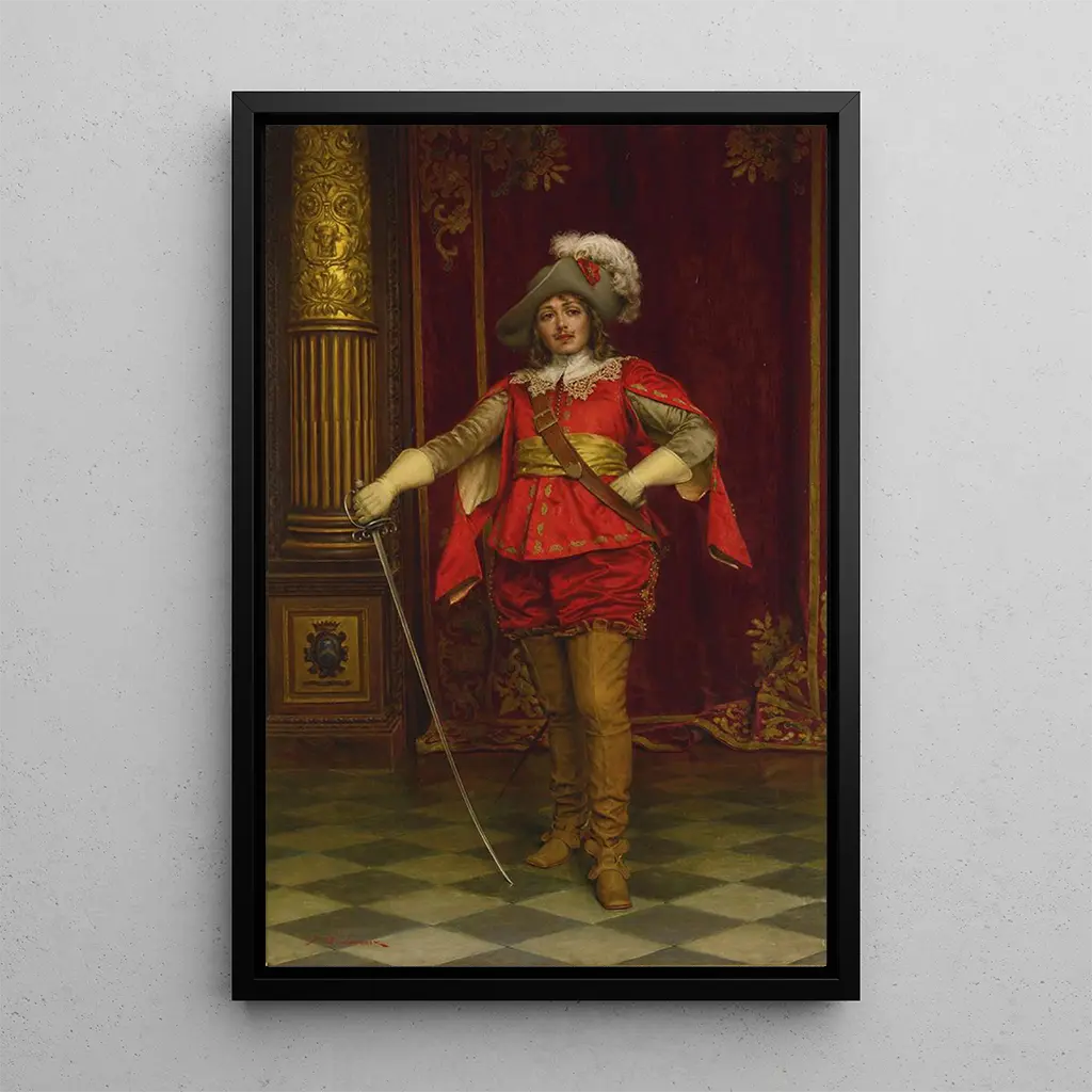 Kunsttrykket af "Cavalier" er et dekorativt stykke, der vil berige ethvert interiør, uanset om det er en stue, et kontor eller et værelse. Dets trykkvalitet og farvernes trofasthed hylder det originale værk, samtidig med at det tilføjer et strejf af elegance og karakter til dit rum. Dette maleri, med sin ubestridelige æstetiske tiltrækningskraft, inviterer til eftertanke og refleksion, hvilket gør hvert blik til et særligt øjeblik. At vælge dette lærred er at vælge at integrere en del af historie og mod i din indretning.