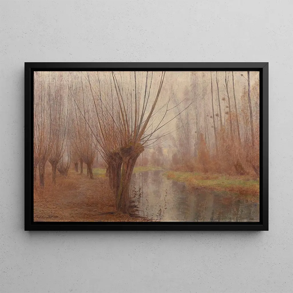 La Vesle i november Jonchery-sur-Vesle : en efterårsmelankoli. I denne kunsttryk af "La Vesle i november Jonchery-sur-Vesle" giver Paul Bocquet os en poetisk vision af et efterårsscene. Nuancer af gråt og brunt dominerer lærredet og fremkalder den melankolske blidhed i sæsonen. De nøgne træer spejler sig i Vesles rolige vand, hvilket skaber en atmosfære af ro og eftertanke. Bocquets impressionistiske teknik gør det muligt at føle den lette brise og hvisken fra vandet, hvilket transporterer betragteren til et suspendert øjeblik. Hvert penselstrøg synes at fange naturens flygtige essens og inviterer til en stille introspektion. Paul Bocquet: en mester i lys og landskaber. Paul Bocquet, aktiv i begyndelsen af det 20. århundrede, er en fransk kunstner, hvis arbejde fokuserer på landskaber og scener fra det landlige liv. Påvirket af impressionismen bruger han lys og farve til at fremkalde dybe følelser. Hans værker, ofte inspireret af naturen, vidner om en tid, hvor kunsten søgte at fange verdens flygtige skønhed. Bocquet skiller sig ud ved sin evne til at forvandle almindelige landskaber til øjeblikke af visuel poesi, hvilket gør ham til en væsentlig repræsentant for sin tid. Hans følsomme og delikate tilgang fortsætter med at inspirere kunstelskere. En dekorativ kunsttryk med mange fordele. Kunsttrykket af "La Vesle i november Jonchery-sur-Vesle" er et perfekt valg til at berige dit opholdsrum, uanset om det er i en stue, et kontor eller et soveværelse. Dets trykkvalitet sikrer en enestående trofasthed over for nuancerne og teksturen i det originale værk, hvilket tilføjer et strejf af elegance til din indretning. Dette maleri, med sin fredelige og eftertænksomme stemning, inviterer til refleksion og afslapning og bliver et centralt element i dit hjem. Ved at vælge dette lærred integrerer du ikke blot et kunstværk, men også en del af den naturlige skønhed og ro i din hverdag.