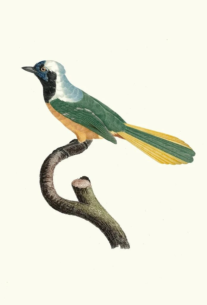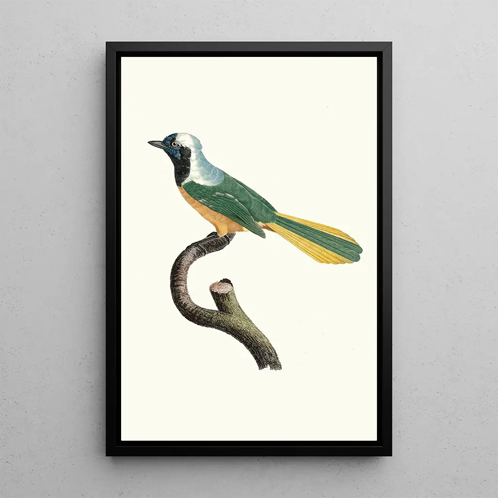 Le Geai Péruvien, et kunsttryk af Jacques Barraband, skiller sig ud med sine livlige farver og sit slående realisme. Lærredet skildrer en majestætisk fugl med dybblå og strålende gule fjer, der synes at komme til live under kunstnerens pensel. Barraband bruger en omhyggelig teknik, der leger med skygger og lys for at give dybde til motivet. Atmosfæren i dette kunsttryk fremkalder de frodige landskaber i Peru, og transporterer betragteren på en visuel rejse ind i den vilde natur. Hvert detalje, fra fjer til livlige øjne, vidner om kunstnerens kærlighed til fauna og flora.