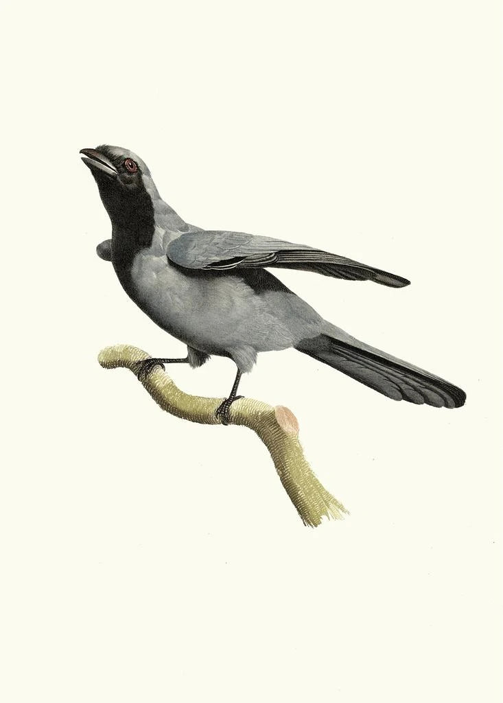 La kunsttryk du Rollier masque noir dévoile un oiseau d'une beauté saisissante, avec son plumage aux teintes sombres et aux reflets irisés. Jacques Barraband, par son talent, parvient à capturer l'élégance de cet oiseau, dont le regard perçant et le masque distinctif ajoutent une dimension mystérieuse à l'œuvre. Les détails minutieux des plumes, rendus avec une technique d’aquarelle raffinée, créent une atmosphère à la fois captivante et poétique, invitant le spectateur à s’immerger dans le monde fascinant des oiseaux.