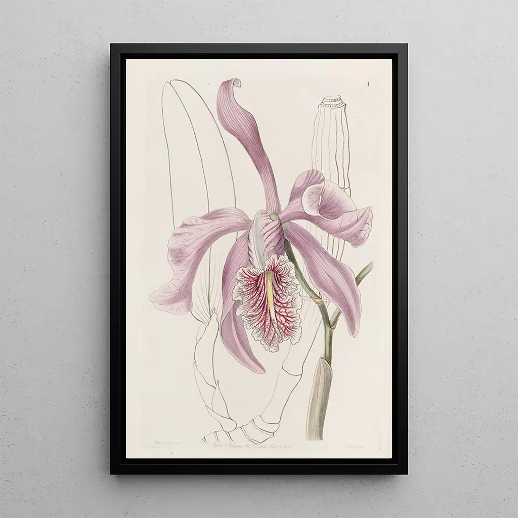 La Grande Cattleya, et ikonisk kunsttryk af Sydenham Edwards, er en sand festival af farver. Med sine livlige kronblade, der spænder fra violet til rosa, tiltrækker dette kunsttryk straks opmærksomhed. Akvarelteknikken, anvendt med finesse, formår at gengive den delikate tekstur af blomsterne, mens den leger med skygger og lys. Atmosfæren, der udspringer af dette lærred, er både glædesfyldt og levende, hvilket inviterer til en dyb fordybelse i den blomstrende skønhed. Hvert detalje er omhyggeligt gengivet, hvilket vidner om kunstnerens beundring for naturen.