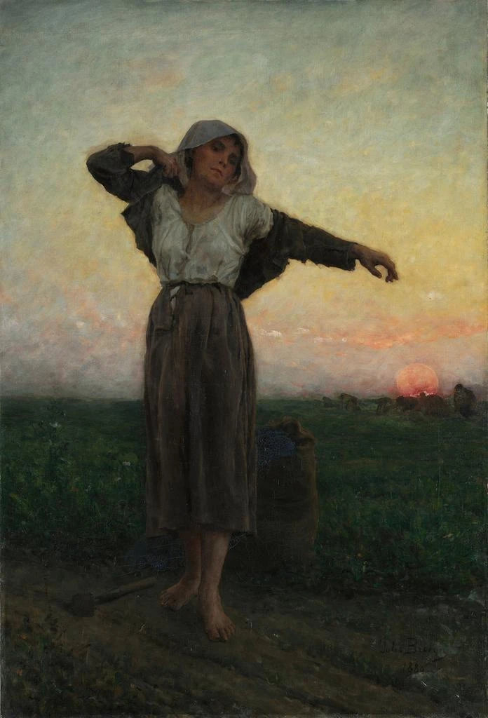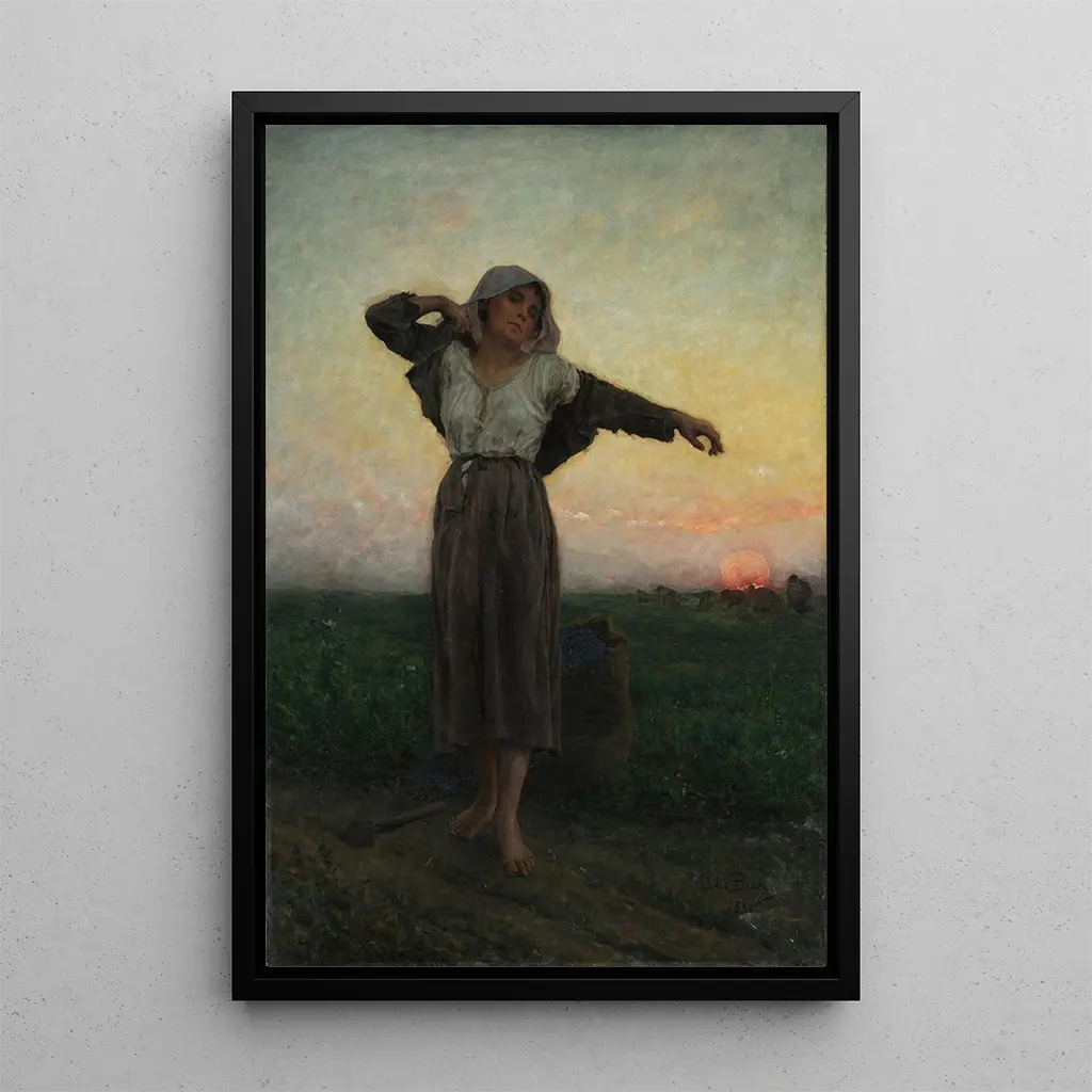 Jules Breton, født i 1827, er en ikonisk fransk kunstner inden for den realistiske bevægelse. Påvirket af traditionerne fra den flamske malerkunst og af scener fra det landlige liv, dedikerer han sig til at skildre bondestandens tilstand med stor følsomhed. Hans kunstværk er en del af den naturalistiske strømning i det 19. århundrede, hvor ægthed og sandhed i motiverne er altafgørende. Breton formåede at indfange øjeblikke fra dagligdagen, hvilket gør ham til et værdifuldt vidne om sin tid. "La glaneuse fatiguée" er et af hans mest berømte kunsttryk, der illustrerer hans engagement i skildringen af de arbejdende klasser.