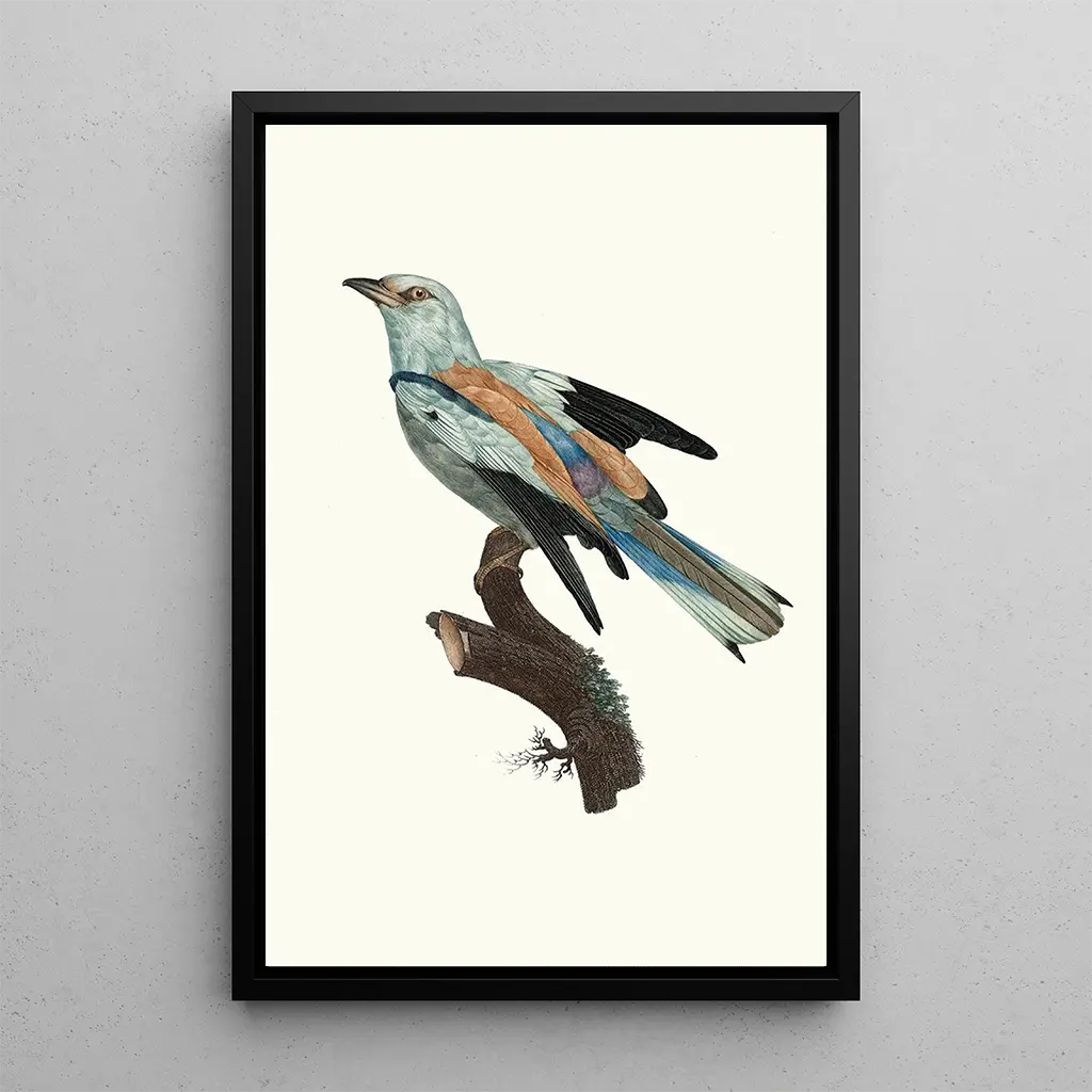 Le Rollier vulgaire mâle, med sit strålende fjerdragt og sine livlige nuancer, tiltrækker øjeblikkeligt opmærksomhed. Denne kunsttryk illustrerer perfekt skønheden af denne fugl, og fanger nuancerne af blå, grøn og gul, der smelter harmonisk sammen. Teknikken med akvarel, anvendt af Jacques Barraband, giver liv til hver enkelt fjer og skaber en atmosfære, der er både delikat og dynamisk. Man kan næsten høre den melodiske sang fra denne fugl, mens man betragter dette værk, der inviterer til en fordybelse i den naturlige verden, hvor farve og lys væves sammen.