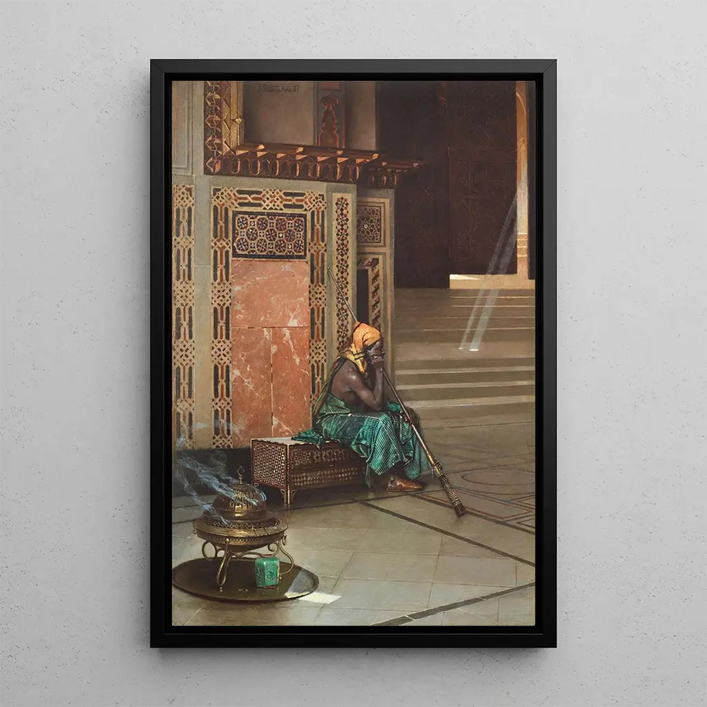 Raphael von Ambros, peintre du XIXe siècle, s'est distingué par son intérêt pour les cultures orientales, qu'il a explorées lors de ses voyages. Son œuvre, En attendant la prière, témoigne de son talent à capturer des moments de vie empreints de spiritualité et de sérénité. Influencé par le mouvement orientaliste, il a su traduire avec finesse les traditions et les rituels de ces sociétés. Son style, à la fois réaliste et poétique, permet de saisir l'essence des scènes qu'il représente, faisant de lui un artiste incontournable pour ceux qui s'intéressent à l'art orientaliste.