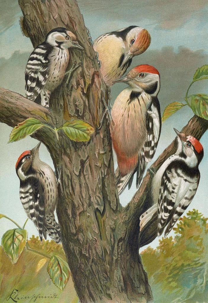 Kunsttryk | Dendrocopus medius Dendrocopus minor - Johann Friedrich Naumann
