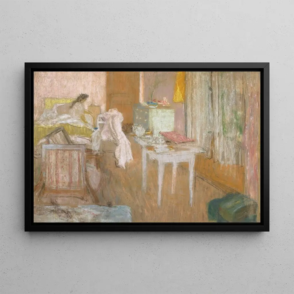 La chambre rose : et et havn af blidhed og intimitet La chambre rose af Édouard Vuillard fremkalder en varm og intim atmosfære, hvor bløde nuancer af rosa og beige flettes sammen for at skabe et indbydende rum. Kompositionen, centreret omkring en kvindelig figur, inviterer til eftertanke og drømmeri. De omhyggelige detaljer i tekstiler og dagligdags genstande vidner om en omhyggelig teknik, hvor den impressionistiske berøring blander sig med en dekorativ tilgang. Værket udstråler en ro, der transporterer betragteren til en fredelig verden, hvor hvert element synes at fortælle en personlig historie. Édouard Vuillard : en mester af Nabis og intimitet Édouard Vuillard, medlem af Nabis-gruppen, har præget slutningen af 1800-tallet og begyndelsen af 1900-tallet med sin unikke stil, der kombinerer impressionisme og symbolisme. Påvirket af kunstnere som Pierre Bonnard og Paul Sérusier, fokuserede Vuillard på at skildre dagliglivet og interiører, hvor han fangede lys og atmosfære med en bemærkelsesværdig følsomhed. Hans arbejde, ofte centret omkring huslige temaer, har været med til at redefinere genremaleriet og har en varig betydning i kunstens historie. La chambre rose er et perfekt eksempel på hans tilgang, hvor intimitet og skønheden i det daglige bliver foræret. En dekorativ tilføjelse med mange fordele Kunsttrykket af La chambre rose er et ideelt valg til at forskønne din stue, dit kontor eller soveværelse. Den bløde og beroligende palette tilføjer et strejf af ro til ethvert rum, samtidig med at den tilføjer en kunstnerisk dimension. Kvaliteten af kunsttrykket sikrer en trofast gengivelse af farver og detaljer, hvilket gør det muligt at nyde værket i fulde drag. Ved at integrere dette billede i din indretning giver du dit hjem et elegant og raffineret præg, samtidig med at du hylder arven fra en stor kunstner i kunsthistorien.
