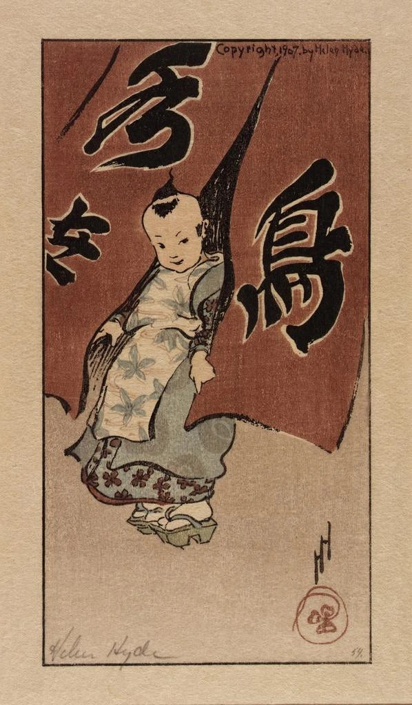 Helen Hyde, née en 1868, est une figure emblématique de l'art américain à la fin du XIXe et au début du XXe siècle. Influencée par le mouvement de l'Art Nouveau et les estampes japonaises, elle développe un style unique qui allie délicatesse et expressivité. Son travail se distingue par une attention particulière aux détails et une palette de couleurs vibrantes. Hyde a passé une partie de sa vie au Japon, où elle a été inspirée par la culture et l'esthétique orientale. Son héritage artistique perdure, et ses œuvres continuent d'être célébrées pour leur beauté et leur sensibilité, témoignant d'une époque où l'art cherchait à capturer l'essence de la vie quotidienne.