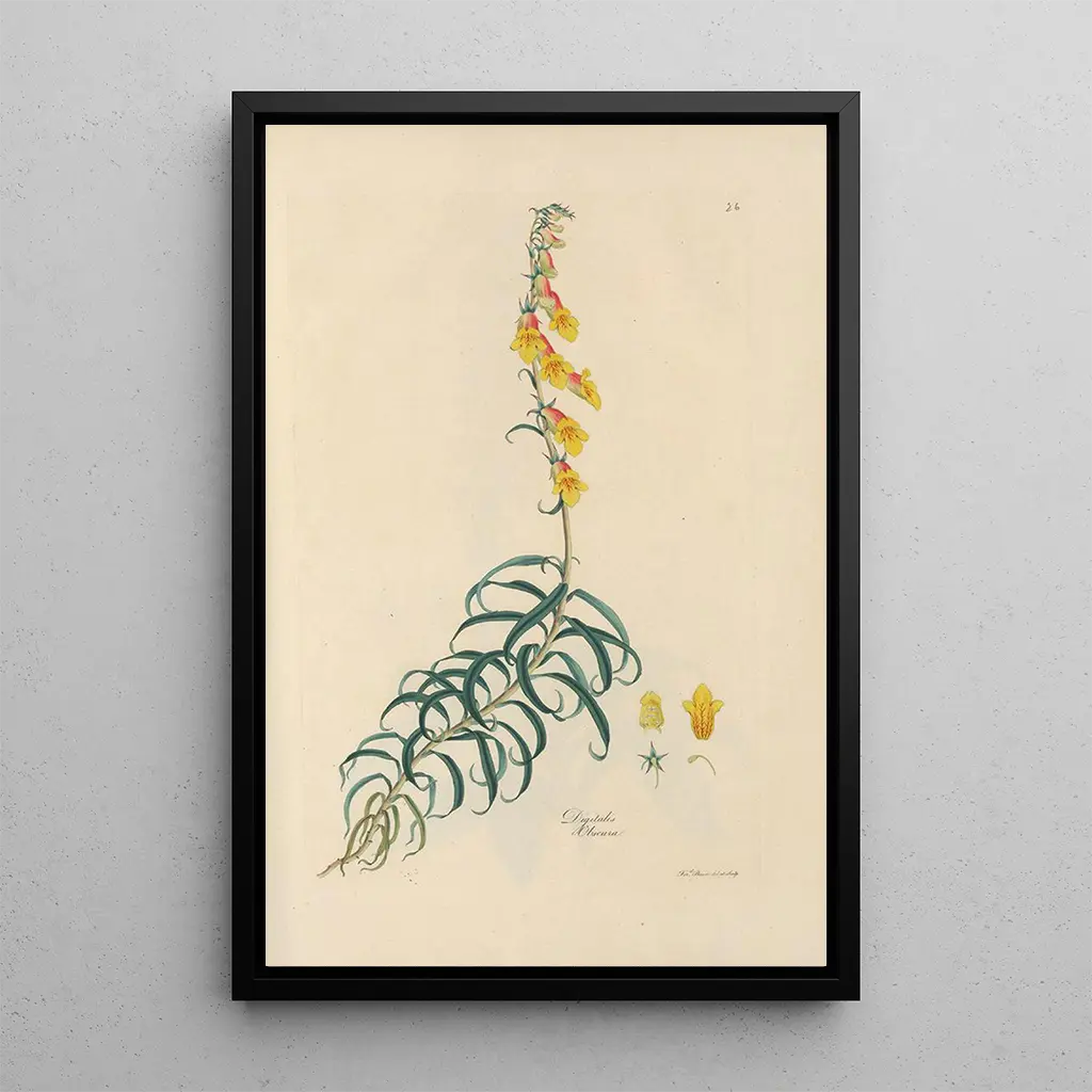 Digitalium monographia Pl26 kunsttryk skiller sig ud med sin livlige og detaljerede gengivelse af floraen. Hvert element i dette værk er omhyggeligt udarbejdet og tilbyder en farvepalette, der fremkalder rigdommen og mangfoldigheden af planter. John Lindleys graveringsteknik formår at fange teksturen og lyset i bladene, hvilket skaber en næsten fordybende atmosfære. Dette lærred inviterer til en visuel udforskning af former og nuancer og afslører den skjulte skønhed i naturen. Ved at betragte dette værk føler man en dyb forbindelse til den vegetale verden, en ægte sanseoplevelse gennem botanikkens vidundere.