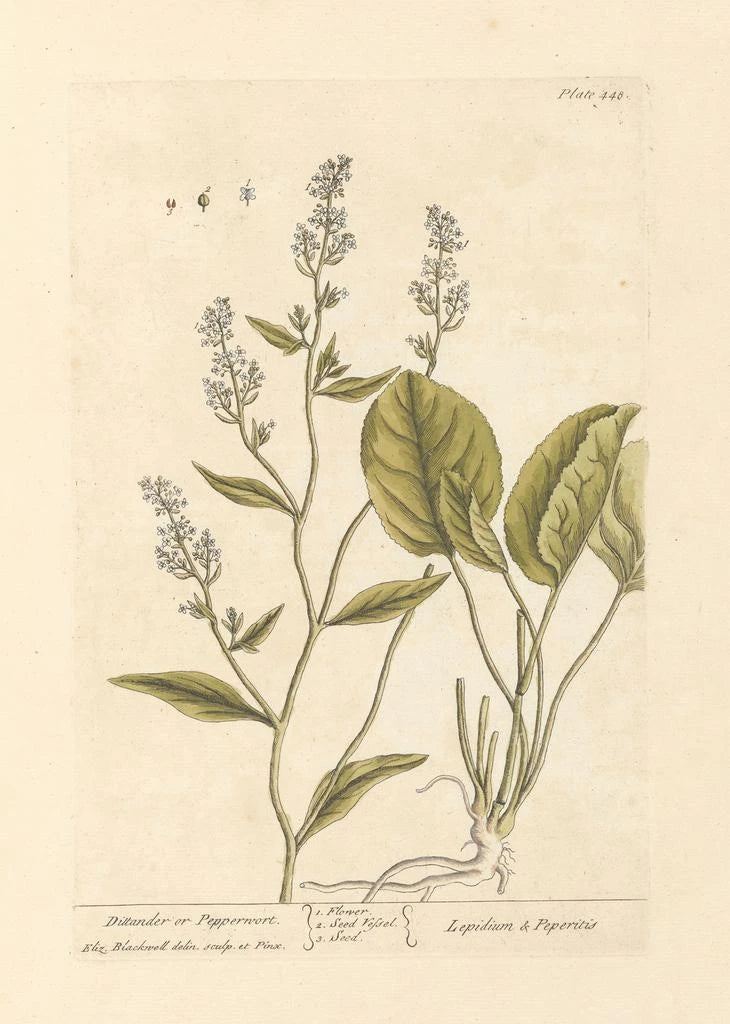 Elizabeth Blackwell, aktiv i det 18. århundrede, er en ikonisk figur inden for botanisk illustration. Født i 1707, formåede hun at skabe sig et navn i en domineret mandsdomineret verden. Påvirket af tidens videnskabelige strømninger bidrog hun til dokumentationen af medicinske og dekorative planter. Hendes kunstværk "Ditandre eller Vandpeber" er en del af en serie dedikeret til planter, hvor hver illustration ledsages af detaljerede beskrivelser. Blackwell åbnede ikke blot vejen for andre kunstnere, men var også med til at fremme interessen for botanisk kunst i det 18. århundrede, og satte sit præg på sin tid på en uudslettelig måde.