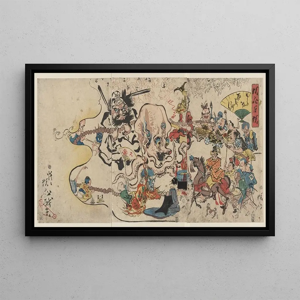Dke Hyakumanben : en kunsttryk af liv og farver Den kunsttryk Dke Hyakumanben af Kawanabe Kyōsai er et livligt værk, der fremkalder en mangfoldighed af figurer og scener fra japansk dagligliv. De strålende farver og de omhyggelige detaljer fordyber seeren i en rig verden af følelser og historier. Træsnitsteknikken, typisk for Edo-perioden, giver kunstneren mulighed for at lege med lys og skygge, hvilket skaber en dynamisk og levende atmosfære. Hver figur, hvert gestus, synes at fortælle en historie og inviterer til eftertanke og personlig fortolkning. Kawanabe Kyōsai : en mester i ukiyo-e i det XIX. århundrede Kawanabe Kyōsai, aktiv i anden halvdel af det XIX. århundrede, er en af de sidste store mestre i ukiyo-e, en japansk træsnitstil, der nåede sit højdepunkt under Edo-perioden. Påvirket af tidens kunstneriske traditioner, formåede han at integrere elementer fra den vestlige kultur, samtidig med at han bevarede essensen af japansk kunst. Hans karriere var præget af en vilje til eksperimentering og innovation, hvilket gjorde ham i stand til at skille sig ud i et kunstmiljø i hastig forandring. Hans værker, som Dke Hyakumanben, vidner om hans evne til at fange livet i alle dets former og gør ham til en uundværlig figur i japansk kunsthistorie. En dekorativ tilføjelse med mange fordele Kunsttrykket Dke Hyakumanben er et dekorativt stykke, der harmonisk integreres i forskellige rum, uanset om det er en stue, et kontor eller et soveværelse. Dets trykkvalitet og trofasthed mod de originale farver sikrer en imponerende æstetisk gengivelse, samtidig med at det tilfører et strejf af eksotisme og kultur til dit hjem. Dette maleri tiltrækker opmærksomhed og vækker samtaler, hvilket gør det til et centralt element i din indretning. Ved at vælge dette lærred, vælger du et værk, der forener skønhed, historie og tradition, og dermed beriger dit miljø på en meningsfuld måde.