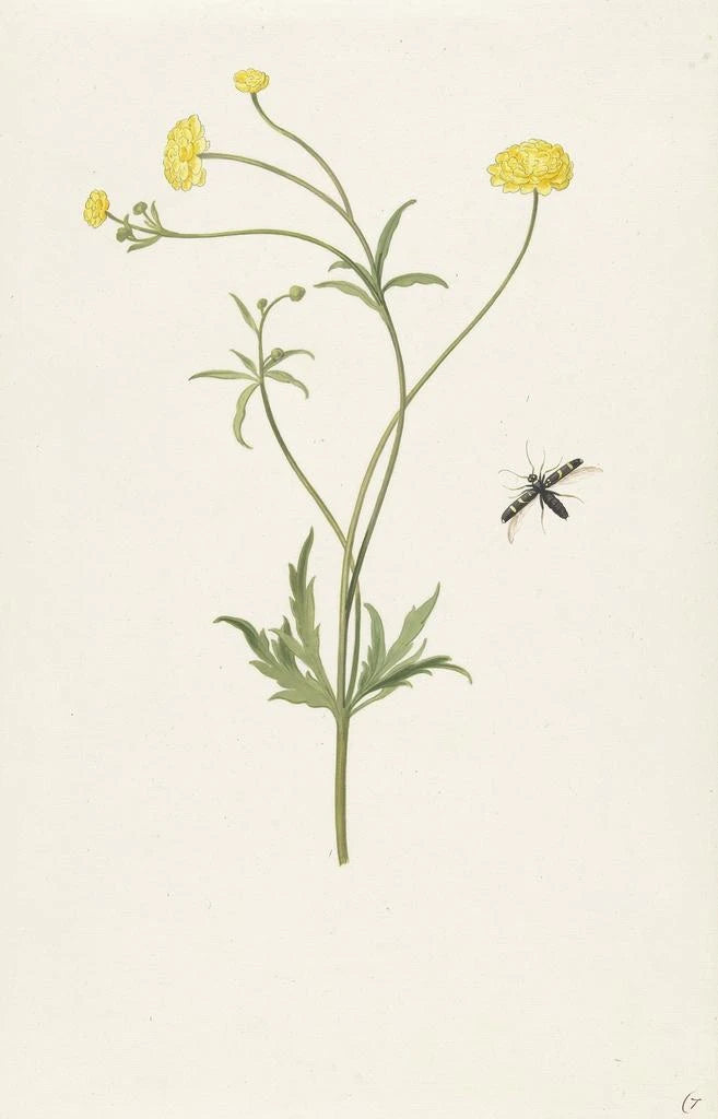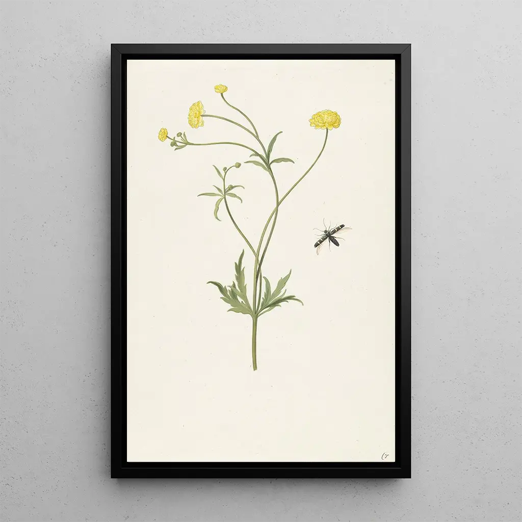Maleri Renoncule gul dobbelt og insekt - Pieter Withoos | Kunsttryk Source: Tableau Renoncule jaune double et insecte - Pieter Withoos | Reproduction