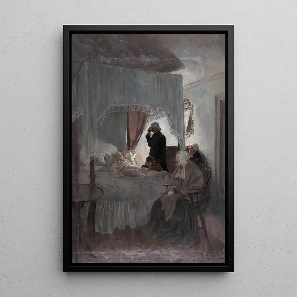 Washingtons død: en hyldest til heroisk storhed Kunsttrykket "Washingtons død" af Howard Pyle fanger et rørende øjeblik i amerikansk historie. På dette lærred skildrer kunstneren den tragiske scene af George Washingtons død, omgivet af sine nærmeste. De varme farver og de fine skygger skaber en atmosfære, der er både højtidelig og følelsesladet. Kompositionen, centreret om Washingtons rolige ansigt, fremkalder en dyb refleksion over ofring og værdighed. Pyle anvender en oljemaleteknik, der bringer teksturerne i tøjet til live, og lyset, der filtreres gennem scenen, forstærker det visuelle og følelsesmæssige indtryk af værket. Howard Pyle: den historiske illustrations mester Howard Pyle, født i 1853, er anerkendt som en af de pionerer inden for amerikansk illustration. Påvirket af romantikken og realismen formåede han at blande disse stilarter for at skabe værker, der fortæller kraftfulde historier. Pyle spillede en afgørende rolle i populariseringen af narrativ kunst, især gennem sine værker om amerikansk historie. Hans evne til at fange historiske øjeblikke med en sådan følelsesmæssig intensitet har gjort ham til en uundværlig figur i sin tid. "Washingtons død" er et perfekt eksempel på hans talent, der illustrerer ikke blot en markant begivenhed, men også vigtigheden af den kollektive hukommelse. En dekorativ tilføjelse med mange fordele Kunsttrykket "Washingtons død" er et dekorativt stykke, der passer perfekt ind i forskellige rum, hvad enten det er en stue, et kontor eller et soveværelse. Dets trykkvalitet og trofasthed mod detaljerne i det originale værk gør det til et ideelt valg for kunst- og historieentusiaster. Det æstetiske tiltrækningskraft ved dette lærred ligger i dets evne til at skabe samtaler og berige det miljø, det befinder sig i. Ved at tilføje dette kunsttryk til din samling, behøver du ikke blot at forskønne dit rum, men inviterer også en del af den amerikanske historie ind i din hverdag.