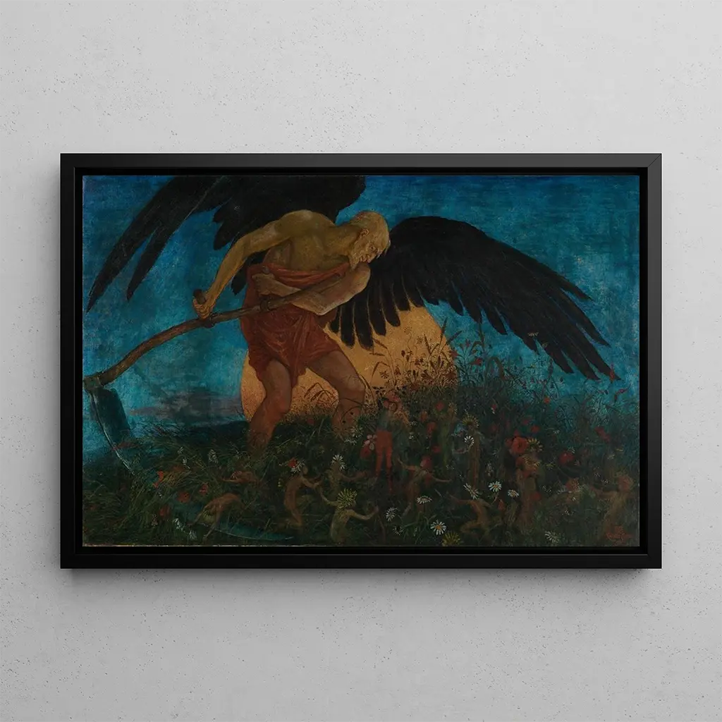 La Mort du Faucheur, et ikonisk kunsttryk af Walter Crane, skildrer en rørende scene, hvor døden, personificeret som en fægter, er ved at høste sjælene. De mørke farver og jordnuancer skaber en melankolsk atmosfære, mens lyset bryder gennem skyggerne og afslører den tragiske skønhed i livet. Cranes teknik, der kombinerer minut detaljer med en vis abstraktion, inviterer betragteren til en dyb refleksion over dødelighed og tidens gang. Hvert element i kompositionen synes at være fyldt med betydning, hvilket gør dette kunsttryk fængslende og tidløst.