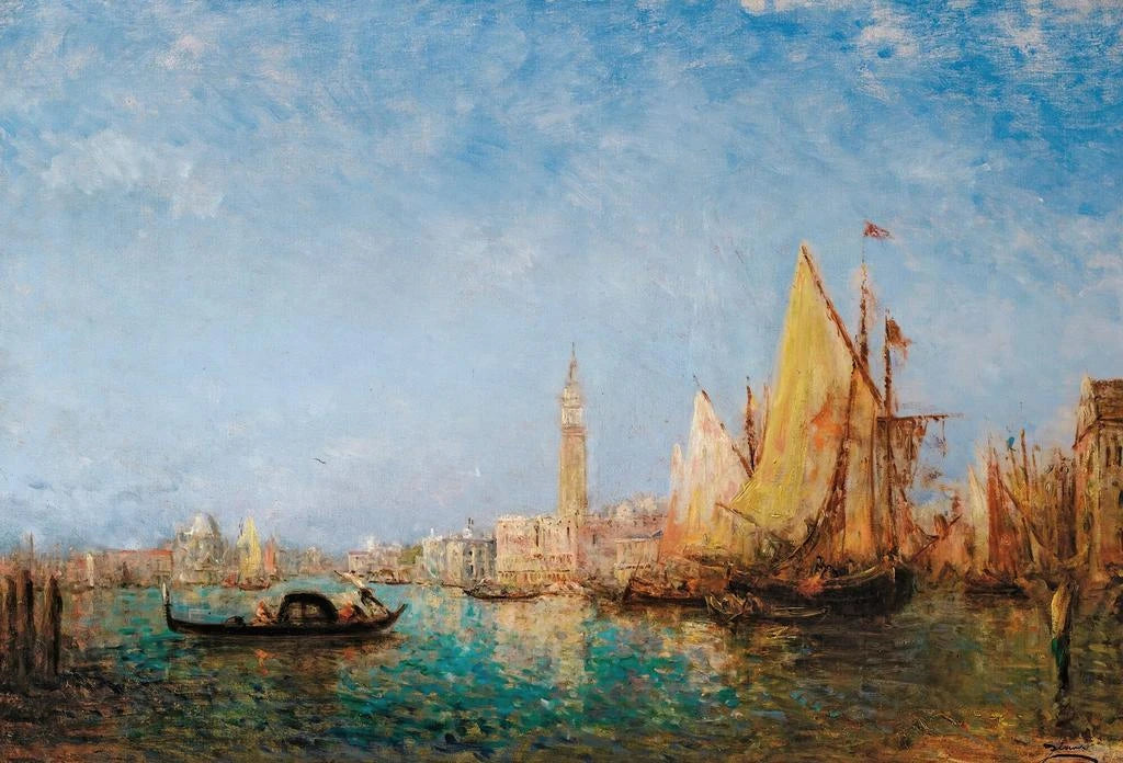 Félix Ziem, peintre du XIXe siècle, est reconnu pour sa capacité à capturer la beauté des paysages marins et urbains. Influencé par le mouvement romantique, il a su allier réalisme et poésie dans ses œuvres. Ziem a voyagé à travers l'Europe, mais c'est à Venise qu'il a trouvé une source d'inspiration inépuisable. Ses tableaux, souvent empreints de mélancolie, témoignent de l'importance de la lumière og vand i hans kunst. Denne kunsttryk af Palais des Doges illustrerer perfekt hans unikke stil, der blander raffineret teknik og palpabel følelse.