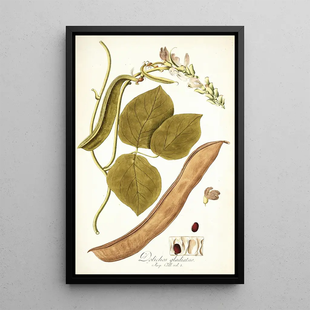 Kunsttrykket af Dolichos gladiaius er et ideelt dekorativt stykke til at berige ethvert rum, uanset om det er en stue, et kontor eller et soveværelse. Dets trykkvalitet og trofasthed mod detaljerne i det originale værk gør det til et attraktivt valg for kunst- og botanikkendere. Ved at integrere dette billede i din indretning tilføjer du et strejf af elegance og eksotisme, samtidig med at du fejrer naturens skønhed. Dette billede er ikke blot et dekorativt element, men også en kilde til inspiration og daglig refleksion.