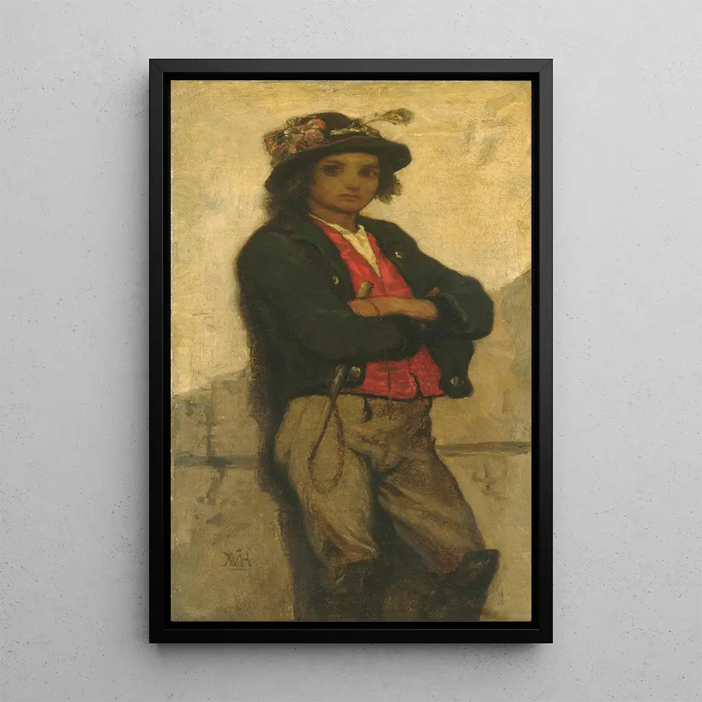 I denne kunsttryk af Garçon italien giver William Morris Hunt os et rørende indblik i barnlig uskyld og nysgerrighed. Maleriet viser en ung dreng, hvis livlige udtryk og glimtende øjne fanger selve essensen af barndommen. De levende farver og det naturlige lys, der bader scenen, skaber en glædelig og livlig atmosfære. Olie-maleri teknikken giver Hunt mulighed for at lege med teksturer, hvilket gør drengens tøj og hår næsten taktile. Dette kunsttryk fremkalder en blid nostalgi, der minder om de enkle og dyrebare øjeblikke i barndommen.