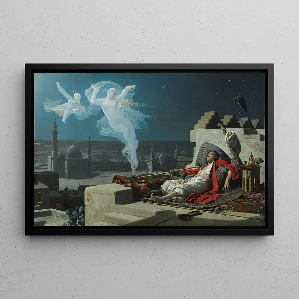Le Rêve d'un eunuque : une exploration des désirs inassouvis La kunsttryk du Rêve d'un eunuque nous plonge dans un univers onirique où les émotions et les désirs se mêlent à la réalité. Jean Lecomte du Nouÿ, avec sa palette riche et ses détails minutieux, parvient à capturer l'essence de l'âme humaine, oscillant entre rêve et désillusion. Les couleurs chaudes et les textures délicates de cette toile évoquent une atmosphère à la fois intime et troublante, où chaque personnage semble porter un poids émotionnel. Cette œuvre invite à une réflexion sur la condition humaine, les désirs inassouvis et les rêves perdus, tout en offrant une esthétique captivante. Jean Lecomte du Nouÿ : un artiste au cœur des tensions sociales Jean Lecomte du Nouÿ, actif au XIXe siècle, est un peintre français dont le travail s'inscrit dans le mouvement académique. Influencé par les courants symbolistes et réalistes, il a su aborder des thèmes complexes tels que l'amour, la solitude et la quête d'identité. Sa formation à l'École des beaux-arts de Paris et ses voyages en Orient ont enrichi son répertoire artistique. Le Rêve d'un eunuque, emblématique de son style, illustre les tensions sociales et les désirs refoulés de son époque, faisant de lui un observateur critique de la société. Une acquisition décorative aux multiples atouts La kunsttryk du Rêve d'un eunuque est une pièce décorative qui saura enrichir votre intérieur, que ce soit dans un salon, un bureau ou une chambre. Sa qualité d'impression et son attention aux détails en font une œuvre captivante qui attire l'œil et suscite l'intérêt. Avec son ambiance évocatrice, cette toile apporte une touche de sophistication et de réflexion à votre décoration. En intégrant cette œuvre dans votre espace, vous créez un environnement inspirant, propice à la contemplation et à l'évasion.