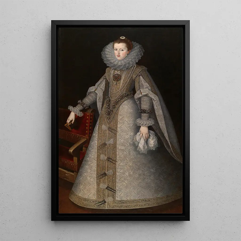 Reine Marguerite d'Espagne, malet af Andrés López Polanco, er et kunsttryk, der udstråler storhed og elegance. De rige farver og de fine detaljer i kunstværket fanger skønheden og værdigheden af dronningen. Kunstnerens teknik, der kombinerer realisme og finesse, fremhæver de delikate træk i ansigtet og de prangende ornamenter på hendes kjole. Dette kunsttryk, en ægte hyldest til kongeriget, inviterer betragteren til at dykke ned i den prangende spanske hofkultur i det 17. århundrede.