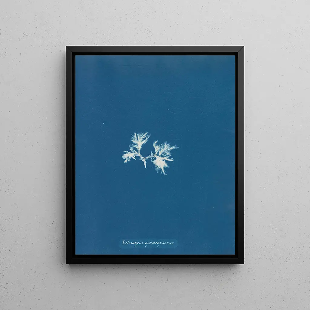 L'œuvre "Ectocarpus sphaerophorus" af Anna Atkins står som en milepæl i historien om botanisk fotografi, der afslører den æteriske skønhed af havalger gennem et kunstnerisk prisme. I 1843 formåede Atkins, pioner inden for cyanotypeteknikken, med sjælden finesse at fange formen og teksturen af en alge, hvilket forvandlede et simpelt naturligt eksemplar til et kunstværk. Dette kunsttryk inviterer til en stille eftertanke, hvor hver detalje synes at ånde og vibrere i takt med tidevandet. Gennem dette billede formår Atkins ikke blot at dokumentere naturen; hun løfter den til kunstens rang, hvilket giver en visuel oplevelse, der overskrider tid og rum.