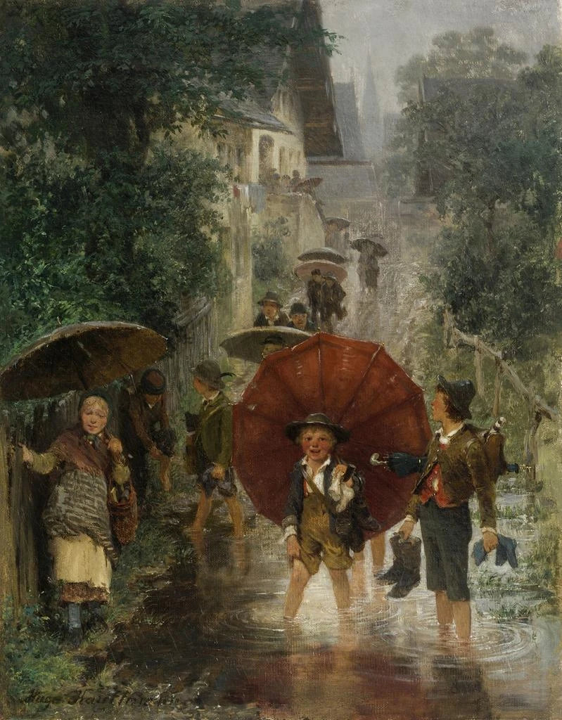 Efter skoletid, børnene under regnen - Hugo Kauffmann