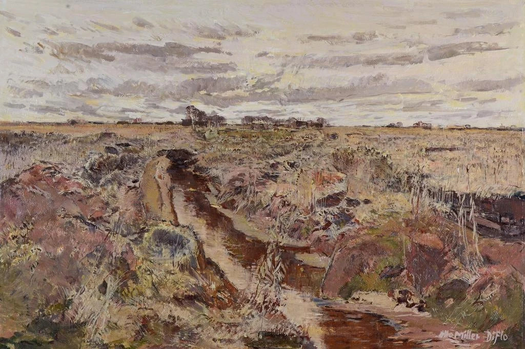 La toile "Soirée d'automne dans la mousse" d'Otto Mueller évoque une atmosphère paisible et contemplative. Les couleurs chaudes de l'automne, allant des oranges aux bruns profonds, se mêlent harmonieusement pour créer une scène où la nature semble vibrer. La technique de l'artiste, caractérisée par des coups de pinceau fluides et expressifs, donne vie à un paysage où la lumière joue un rôle essentiel, illuminant les détails de la mousse et des feuillages. Cette œuvre invite le spectateur à s'immerger dans un monde de sérénité, où chaque élément semble raconter une histoire.