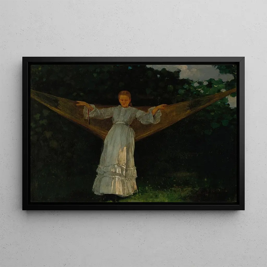 Kunsttrykket af "Eftermiddags sommer" af Winslow Homer indfanger essensen af en fredelig sommerdag, hvor det gyldne sollys danser på det rolige vand. De livlige farver og skyggelege skaber en fredelig atmosfære, der inviterer til afslapning og eftertanke. Homers impressionistiske teknik, med sine flydende penselstrøg og lyse palet, fremkalder en følelse af bevægelse og liv. Dette lærred, både enkelt og poetisk, transporterer betragteren til et flygtigt øjeblik af lykke, hvor naturen og menneskeheden mødes harmonisk.