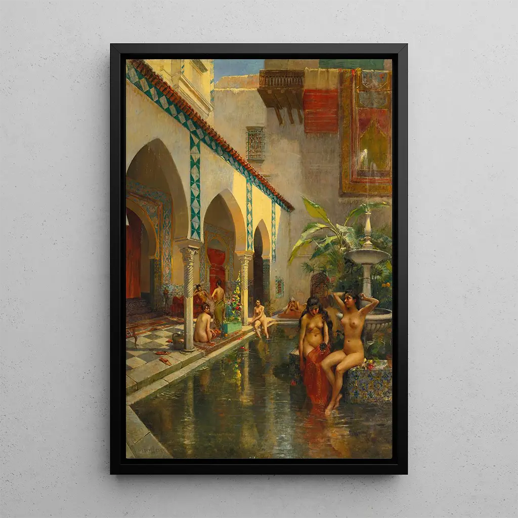 Kunsttrykket af "En exotisk gård" er et ideelt valg til at forskønne dit hjem, uanset om det er i en stue, et kontor eller et soveværelse. Dets trykkvalitet sikrer en bemærkelsesværdig trofasthed over for farver og detaljer i det originale værk, hvilket giver dig mulighed for at nyde skønheden i denne scene fuldt ud. Ved at integrere dette lærred i din indretning tilføjer du et strejf af elegance og flugt, samtidig med at du vækker nysgerrigheden hos dine gæster. Dette maleri, en ægte invitation til rejse, vil berige dit opholdsrum med en varm og indbydende atmosfære.