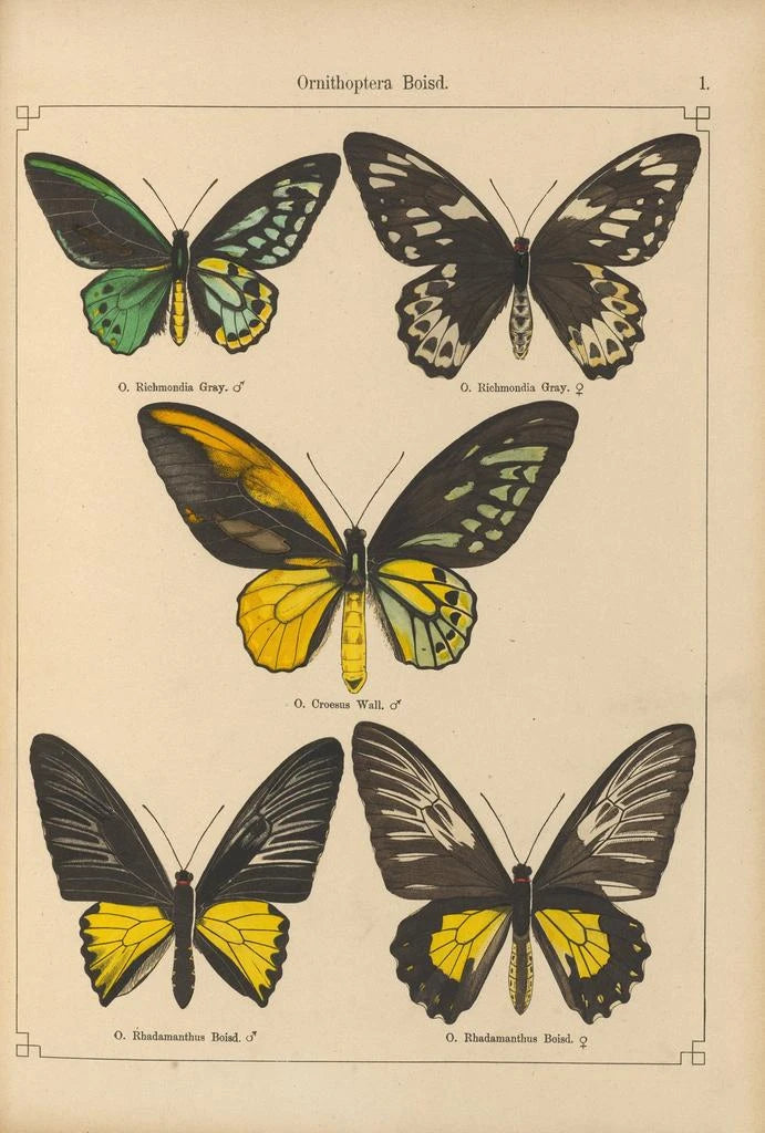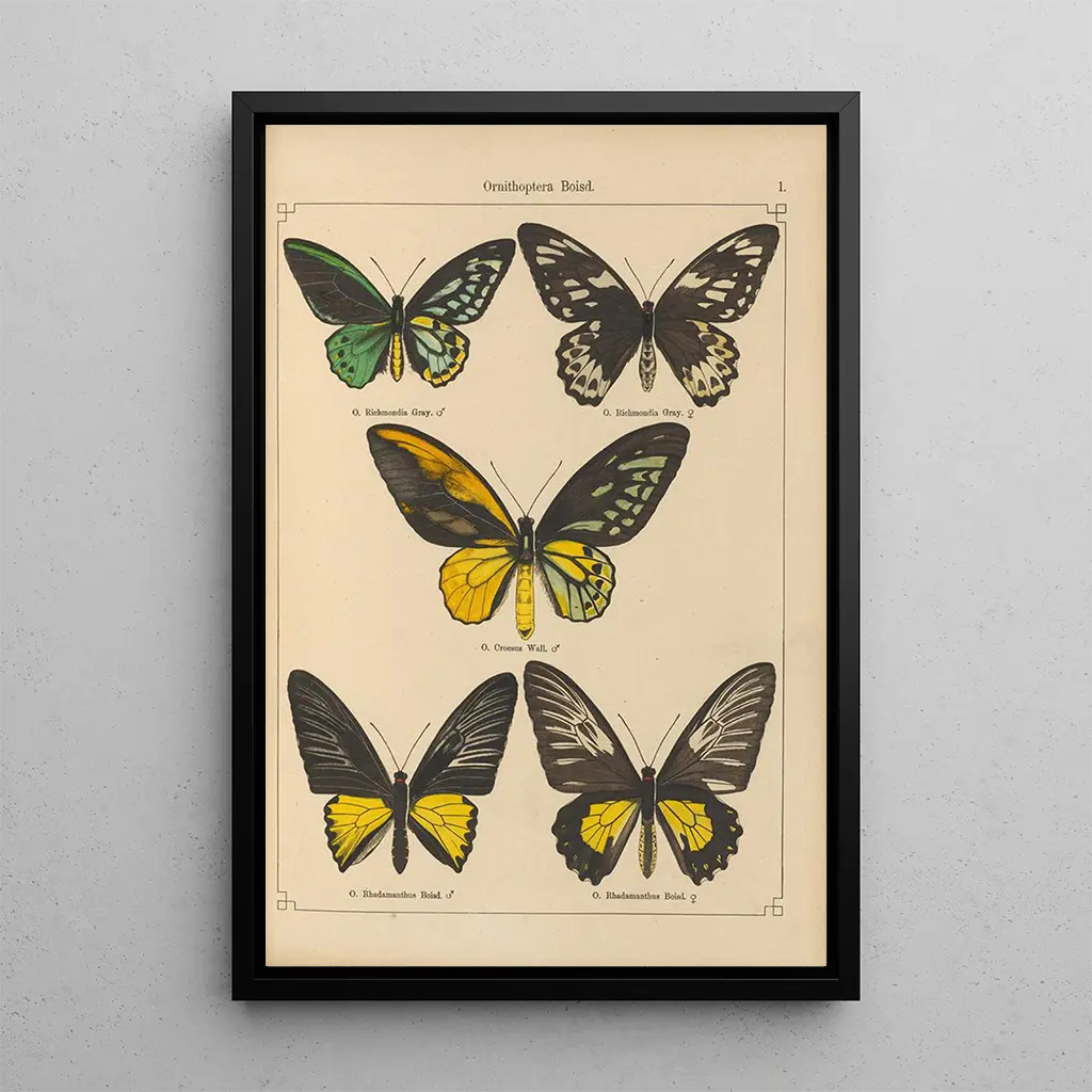 Kunsttrykket "Papillons exotiques Pl001" af Otto Staudinger er en livlig fejring af biodiversiteten. De iøjnefaldende farver på sommerfuglene, der spænder fra dybblå til lyse gule, skaber et levende billede, der straks fanger øjet. Staudingers delikate teknik, kombineret med en skarp sans for detaljer, gør det muligt at gøre hver sommerfugl unik og fascinerende. Værket fremkalder en atmosfære af lethed og glæde, der inviterer betragteren til at beundre den flyvende skønhed af disse væsener.