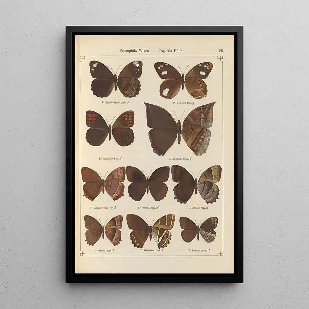 Kunsttrykket af Papillons exotiques Pl085 af Otto Staudinger tager os med ind i en verden, hvor naturen afslører sig i sine smukkeste former. De fine detaljer og de livlige farver i dette værk fanger essensen af papillons, symboler på lethed og forvandling. Hvert insekt er gengivet med bemærkelsesværdig præcision, hvilket fremhæver rigdommen af mønstre og nuancer, der pryder deres vinger. Atmosfæren, der udspringer af dette lærred, er både fredelig og dynamisk, hvilket inviterer til en visuel udforskning af naturens vidundere.