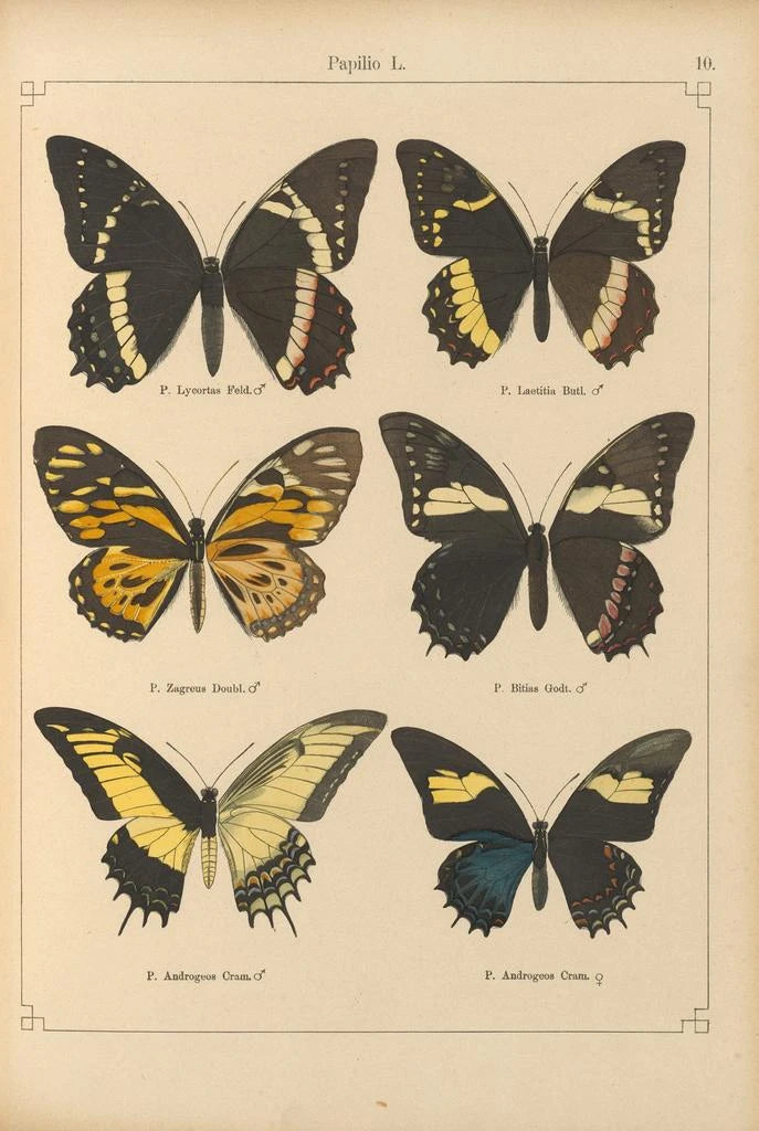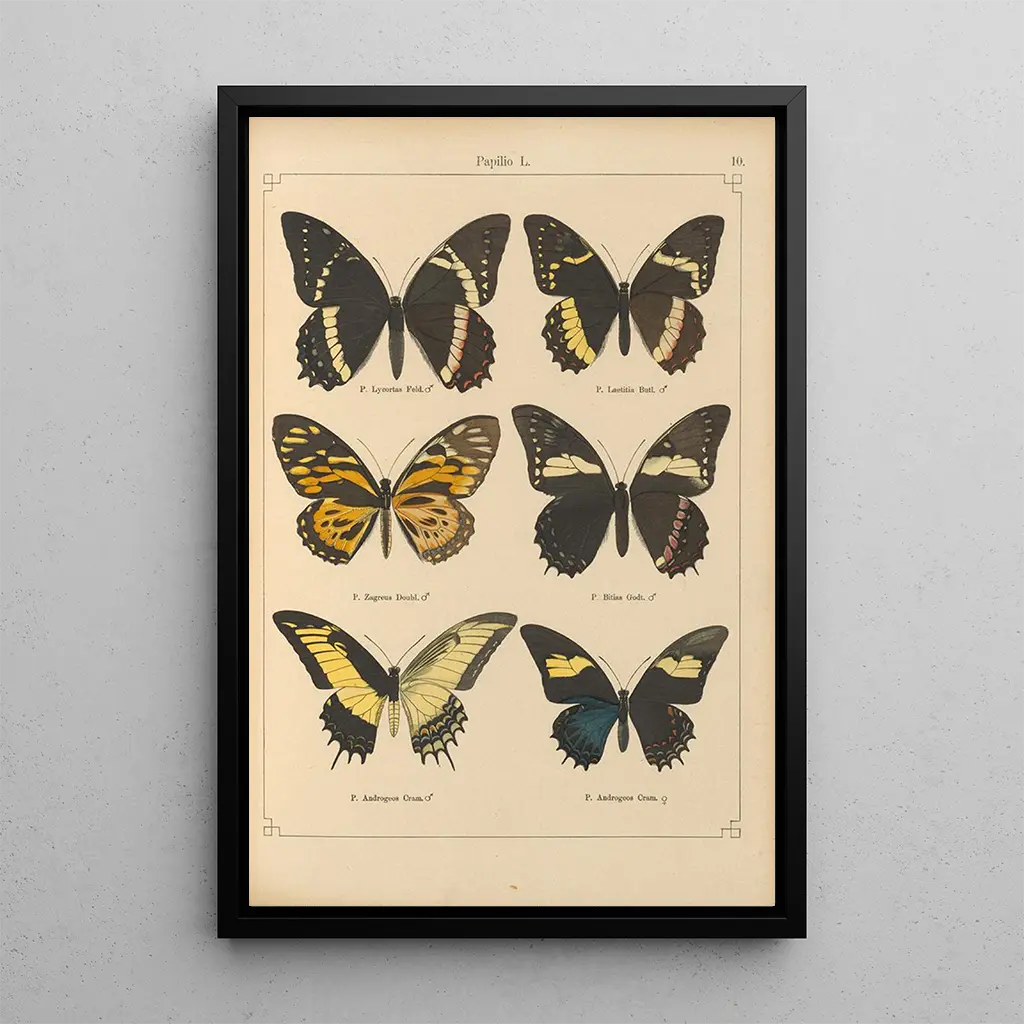 Kunsttrykket af Papillons exotiques Pl010 tager os med ind i en fascinerende verden, hvor naturen udtrykker sig gennem levende farver og delikate former. Otto Staudinger, med sit uovertrufne talent, formår at indfange disse insekter med glitrende vinger, hvilket skaber en atmosfære af lethed og ynde. Hvert sommerfugl, omhyggeligt detaljeret, synes klar til at lette, hvilket tilføjer en følelse af bevægelse til kompositionen. De livlige nuancer, fra dybblå til lyse gule, blander sig harmonisk og afslører skønheden og mangfoldigheden i den naturlige verden.