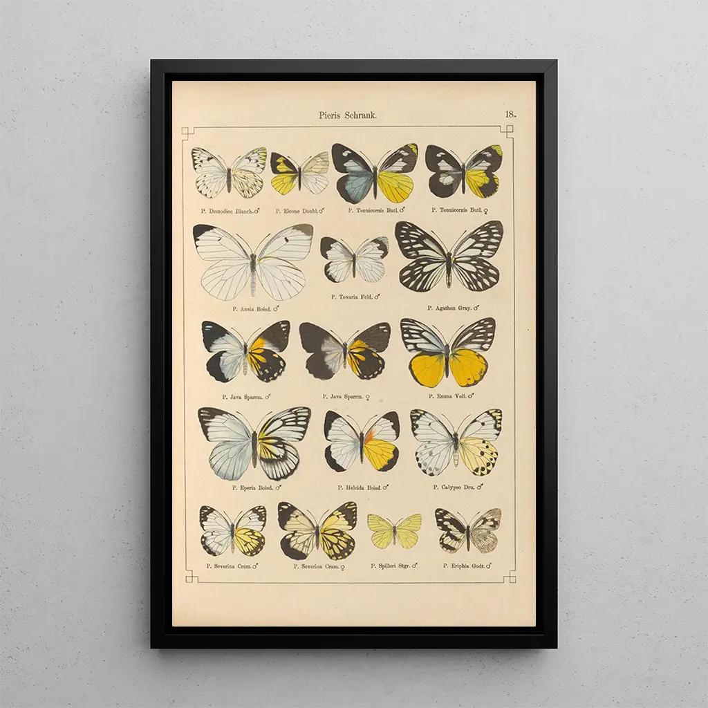 "Papillons exotiques Pl018" af Otto Staudinger tilbyder en fascinerende fordybelse i den farverige verden af insekter. Dette livlige kunsttryk fremhæver en række af papillons, hver med unikke mønstre og farver, der fremkalder biodiversitetens rigdom. Lyset spiller en afgørende rolle i denne komposition, fremhæver de delikate nuancer og teksturer på vingerne. Akvarelteknikken, anvendt med mesterlighed, skaber en let og luftig atmosfære, der inviterer betragteren til at udforske hver detalje. Dette kunsttryk er en fejring af naturen, en hyldest til de flyvende skabningers flygtige skønhed.