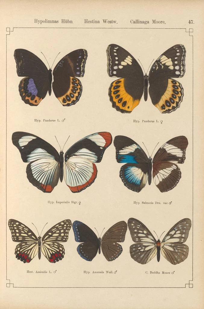 Kunsttrykket af Papillons exotiques Pl047 tager os med til en verden, hvor naturen udtrykker sig med glans og mangfoldighed. De skinnende farver på vingerne, der spænder fra livlige nuancer til blidere toner, skaber en varm og indbydende atmosfære. Akvarelteknikken, mestret af Otto Staudinger, gør det muligt at gengive hver detalje med bemærkelsesværdig præcision, og fanger letheden og yndefuldtheden i disse insekter. Dette kunsttryk inviterer til flugt og eftertanke, og afslører den flygtige skønhed af sommerfugle i al deres pragt.