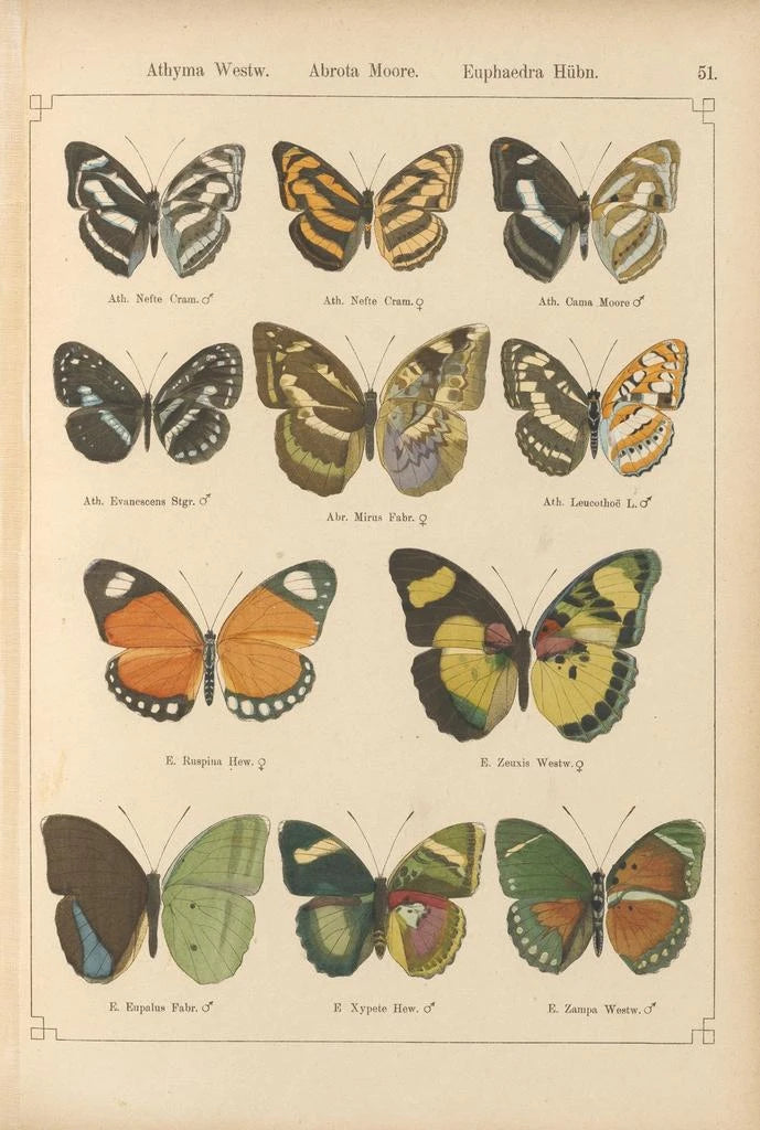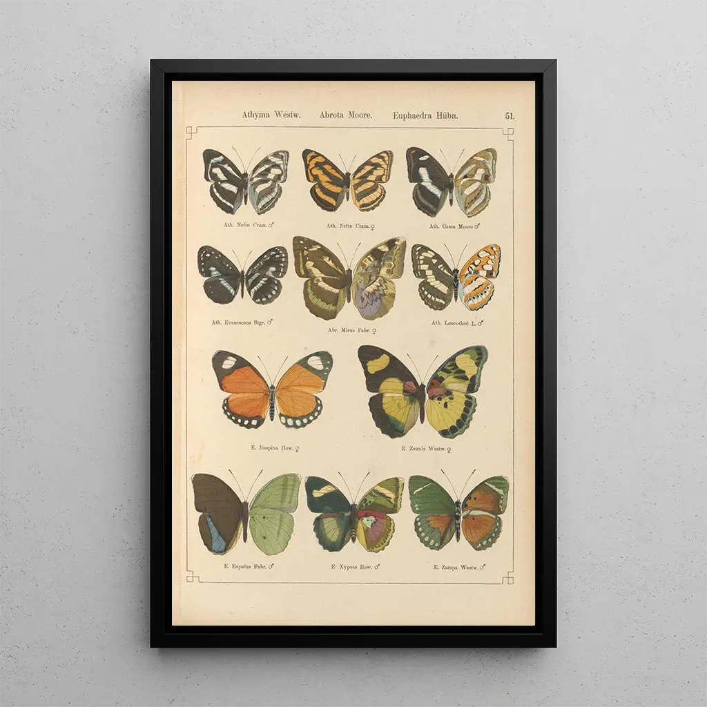 De "Eksotiske sommerfugle Pl051" af Otto Staudinger er en fejring af mangfoldigheden og skønheden i arter. Dette kunsttryk, rigt på detaljer, viser sommerfugle med livlige nuancer, der næsten synes at flyve ud af lærredet. Præcisionen i træk og finheden i farverne skaber en glædelig og dynamisk atmosfære, der inviterer betragteren til at beundre naturens storhed. Hvert sommerfugl, med sine unikke mønstre, fortæller en historie om forvandling og skrøbelighed, hvilket giver en fascinerende visuel oplevelse, der transporterer observatøren til en fortryllende verden.
