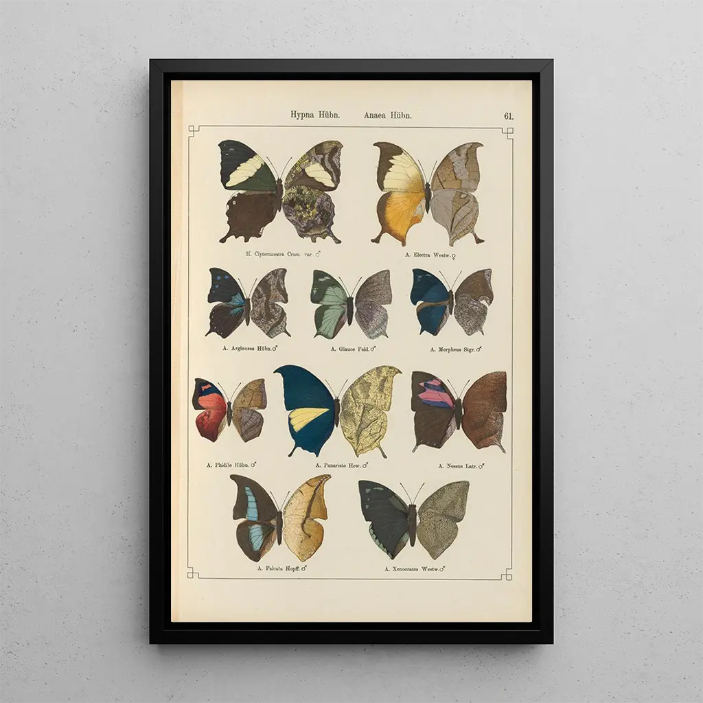 De "Papillons exotiques Pl061" af Otto Staudinger indfanger den livlige essens af biodiversitet. Lærredet bliver levende takket være en palette af strålende farver, hvor nuancer af blå, gul og rød smelter harmonisk sammen. Kunstnerens teknik, der kombinerer præcision og finesse, gør det muligt at gengive hver detalje af sommerfuglenes vinger med bemærkelsesværdig elegance. Atmosfæren, der udspringer af dette værk, er både glædesfyldt og beroligende, hvilket inviterer betragteren til at dykke ned i en verden, hvor naturen blomstrer i al sin pragt.