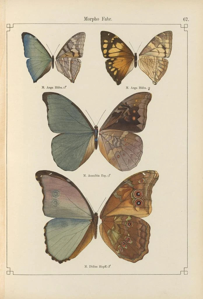 I denne kunsttryk af Papillons exotiques Pl067 tager Otto Staudinger os med ind i en livlig verden, hvor naturen afslører sig med glans. De skinnende nuancer på sommerfuglenes vinger blander sig harmonisk, hvilket skaber et fængslende billede. Akvarelteknikken, der er anvendt med finesse, formår at gengive letheden og den delikate skønhed af disse flyvende væsener. Atmosfæren, der udspringer af dette værk, er både beroligende og inspirerende, og inviterer til flugt og fordybelse i biodiversitetens vidundere.