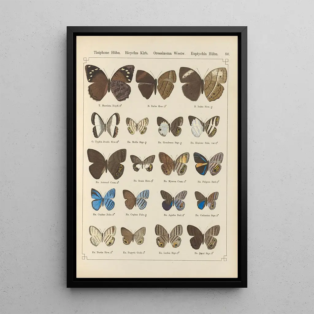 Kunstværket "Papillons exotiques Pl080" af Otto Staudinger tager os med ind i en fascinerende verden, hvor livlige farver og delikate former mødes. Hvert sommerfugl er gengivet med bemærkelsesværdig præcision, med vinger dekoreret med mønstre, der næsten virker uvirkelige. Den akvarelteknik, Staudinger anvender, giver dette lærred en lethed og flydende kvalitet, der skaber en drømmeagtig atmosfære. Kunstværket inviterer til forundring og til at beundre den flygtige skønhed af disse vingede væsener, symboler på forvandling og frihed.