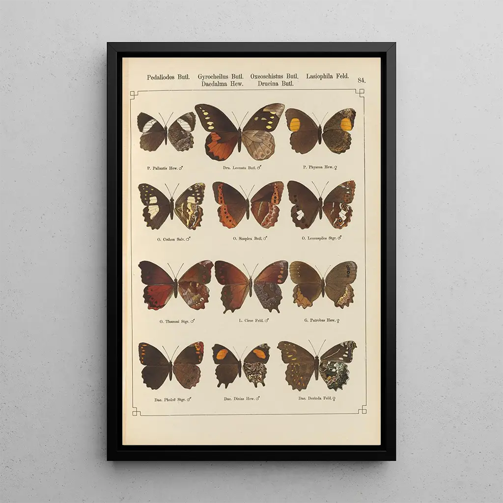 I denne kunsttryk af Papillons exotiques Pl084 tager Otto Staudinger os med til en livlig verden, hvor farverne smelter sammen med ynde. De strålende nuancer af blå, gul og rød blander sig harmonisk og skaber en atmosfære, der både er glædesfyldt og beroligende. Hvert sommerfugl, forsigtigt placeret på en neutral baggrund, synes at komme til live og er klar til at lette. Den akvarelteknik, Staudinger bruger, giver lethed til hele værket og fremhæver den flygtige skønhed af disse vingerede væsener. Dette kunsttryk inviterer til eftertanke og forundring over biodiversitetens rigdom.