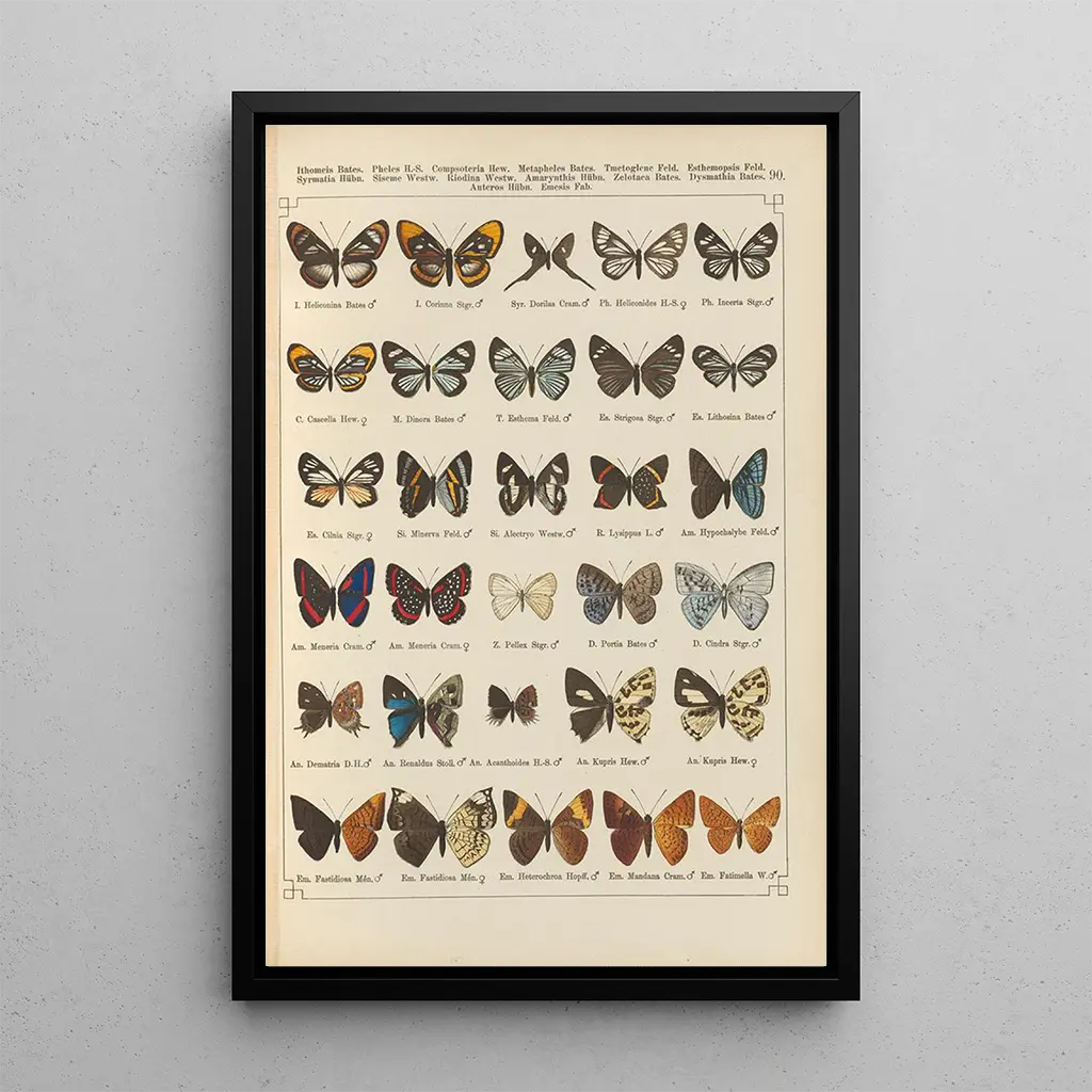 De "Papillons exotiques Pl090" af Otto Staudinger indfanger selve essensen af naturlig skønhed gennem en livlig palet og detaljerede elementer. Hvert sommerfugl, omhyggeligt gengivet, synes at komme til live på lærredet, hvilket fremkalder en atmosfære af lethed og ynde. De strålende nuancer af blå, gul og rød flettes harmonisk sammen, hvilket skaber et billede, der straks fanger opmærksomheden. Staudingers teknik, både præcis og udtryksfuld, giver mulighed for at føle skrøbeligheden og elegance af disse vingerede væsener, og inviterer betragteren til en fredelig refleksion.