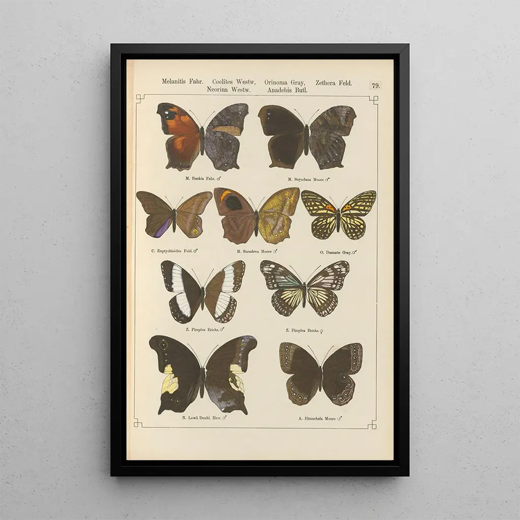 Kunsttrykket af værket "Papillons exotiques Pl079" af Otto Staudinger tager os med ind i en livlig verden, hvor naturen udtrykker sig gennem en palette af strålende farver. Hvert sommerfugl, omhyggeligt detaljeret, synes at komme til live på lærredet, med sine delikate vinger, der fanger lyset på en næsten magisk måde. Akvarelteknikken, som Staudinger bruger, skaber subtile overgange, der tilføjer dybde til denne komposition. Den overordnede atmosfære fremkalder en følelse af lethed og frihed, og inviterer betragteren til at drømme sig væk til en verden, hvor den naturlige skønhed hersker.