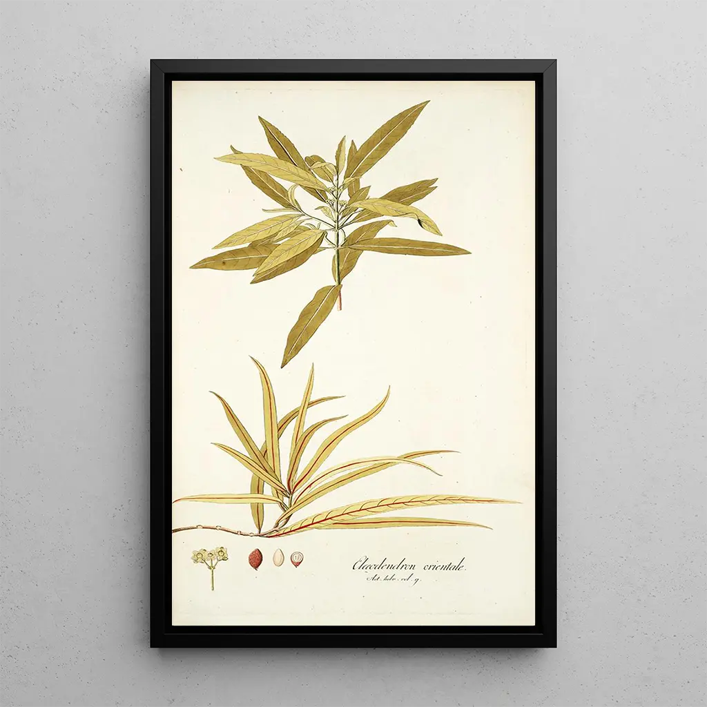 Elaeodendron orientale : et vindue til biodiversiteten L'œuvre "Elaeodendron orientale" af Nikolaus Joseph Freiherr von Jacquin er en fascinerende fremstilling af den tropiske flora. Med sine livlige farver og organiske former tiltrækker denne kunsttryk straks opmærksomhed. Kunstnerens teknik, der kombinerer videnskabelig præcision med kunstnerisk følsomhed, hylder skønheden i denne plante. Atmosfæren, der udspringer af dette lærred, fremkalder en frodig verden, hvor hver detalje er omhyggeligt observeret og fremhævet, hvilket inviterer seeren til at udforske naturens rigdom. Nikolaus Joseph Freiherr von Jacquin : en kunstner ved krydset mellem kunst og videnskab Nikolaus Joseph Freiherr von Jacquin, botaniker og illustratør fra det 18. århundrede, spillede en nøglerolle i studiet af eksotiske planter. Hans rejser i Amerika og Caribien gjorde ham i stand til at opdage en lang række arter, som han senere immortaliserede i sine værker. "Elaeodendron orientale" er en af disse kunsttryk, der afspejler hans sans for detaljer og hans ønske om at dele biodiversitetens skønhed. Hans arbejde har ikke kun beriget botanikken, men også påvirket mange kunstnere fra sin tid, hvilket gør ham til en ikonisk figur inden for videnskabelig kunst. En dekorativ tilføjelse med mange fordele Kunsttrykket "Elaeodendron orientale" er et dekorativt valg, der vil tiltale naturelskere og kunstentusiaster. Uanset om det skal pryde en stue, et kontor eller et værelse, tilføjer dette lærred et strejf af elegance og ro til dit rum. Dets trykkvalitet sikrer en imponerende trofasthed over for nuancer og detaljer i det originale værk, samtidig med at det tilbyder en æstetisk tiltrækning. Ved at integrere dette kunsttryk i din indretning tilføjer du et stykke, der ikke kun forskønner dit hjem, men også fremkalder harmoni mellem kunst og natur.