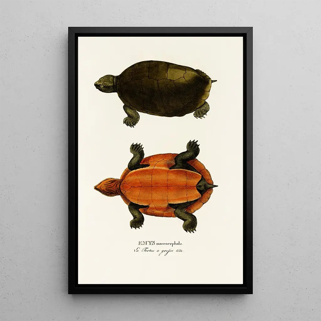 Kunsttrykket af Emys Maerocephala er et ideelt valg til at berige dit hjem, uanset om det er i stuen, på kontoret eller i soveværelset. Dets trykkvalitet og trofasthed over for de originale detaljer gør det til et dekorativt kunstværk, der fanger øjet og skaber samtaler. Dets æstetiske appel, kombineret med dets budskab om bevarelse af naturen, gør det til en meningsfuld tilføjelse til enhver samling. Ved at integrere dette lærred i dit rum tilføjer du et strejf af elegance og ro, samtidig med at du fejrer dyrenes skønhed.