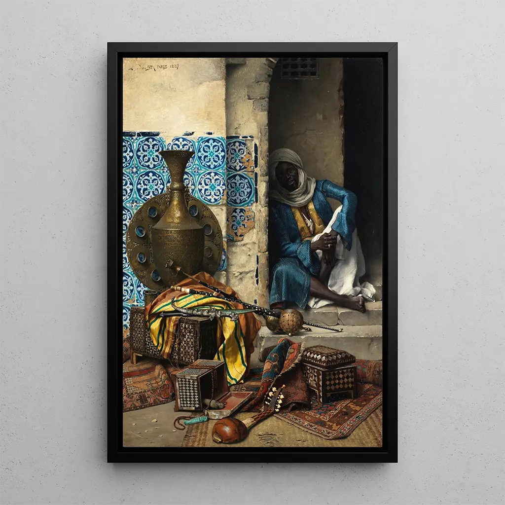 Denne kunsttryk af 'Un marchand d'artefacts' er et dekorativt stykke, der beriger ethvert rum, uanset om det er en stue, et kontor eller et bibliotek. Dens reproduktionskvalitet sikrer en trofast gengivelse af originalværkets detaljer, samtidig med at den tilføjer et strejf af eksotisme og sofistikeret elegance til din indretning. Det æstetiske tiltrækningskraft ved dette lærred, med sine livlige farver og fine detaljer, gør det til et ideelt valg for dem, der ønsker at skabe en varm og inspirerende atmosfære, samtidig med at de fejrer skønheden i orientalismen.