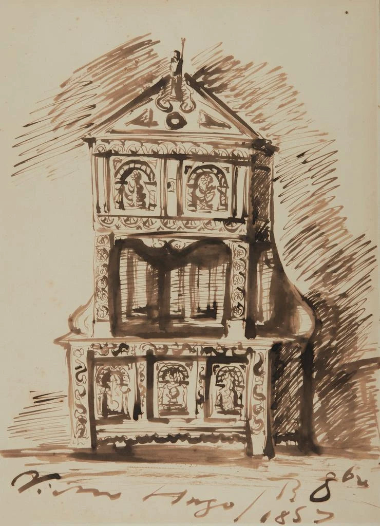 Victor Hugo, berømt forfatter og digter fra det 19. århundrede, er også anerkendt for sine talentfulde malerier. Påvirket af romantikkens bevægelse formåede han at fange essensen af sin tid gennem sine værker. Selvom han primært er kendt for sine romaner som "Les Misérables", har Hugo udforsket maleri som et supplementært udtryksmiddel. Hans stil, præget af passion og følelser, afspejler tumulten i hans tid, samtidig med at den hylder skønheden i naturen og håndværket. "Un buffet" indskriver sig i denne søgen efter skønhed og vidner om kunstens vigtige rolle i dagligdagen.