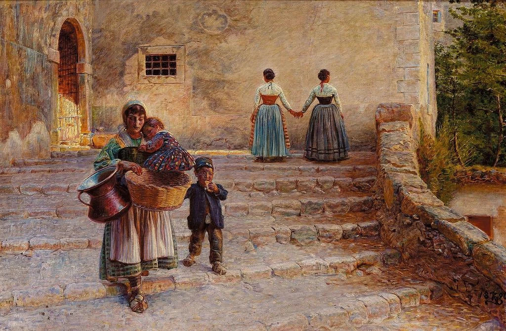 En fattig italiensk kvinde med sine børn: et rørende maleri af dagligdagen