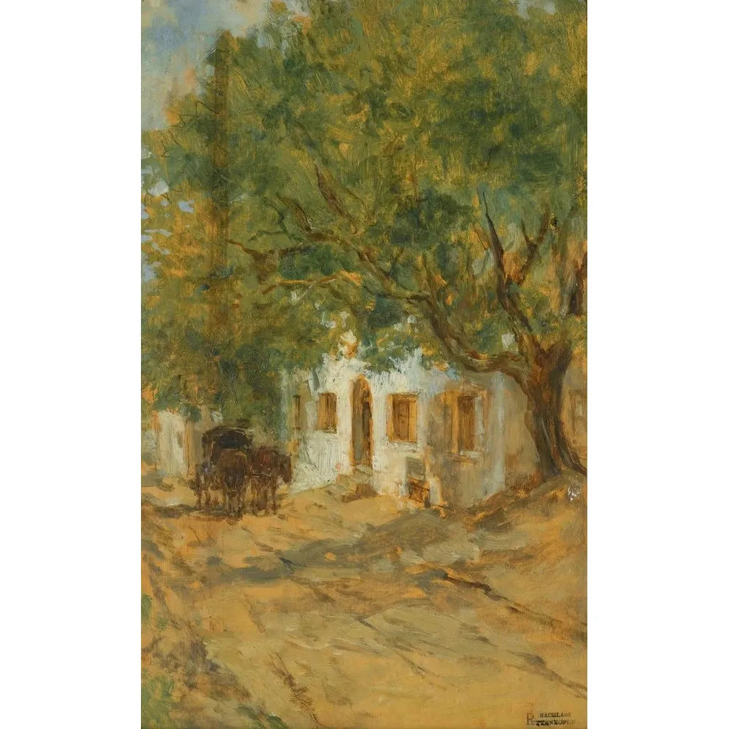 I "En landsbygade" fanger August von Pettenkofen essensen af en fredelig hverdag, hvor lyset leger på husfacaderne, og hvor figurerne synes at blive levende under betragterens blik. De varme og jordnære farver fremkalder en indbydende atmosfære, mens oliemalingen giver liv til detaljerne, fra brosten til træernes skygger. Dette maleri inviterer til en blid eftertanke, hvor hvert element fortæller en historie, og hvor tiden synes at stå stille, hvilket giver et glimt af en svunden tid.