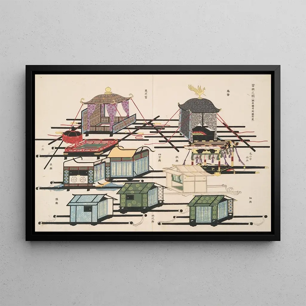 Denne kunsttryk af En Illustration af Bærestole transporterer seeren til en verden, hvor elegance og raffinement hersker. De fine linjer og de bløde farver i værket fremkalder en atmosfære af ro og sofistikerethed. Kunstnerens teknik, der kombinerer akvarel og blæk, skaber en flydende effekt, der giver liv til bærestolene, symboler på luksus og social status. Hvert detalje, fra ornamenter til teksturer, er omhyggeligt gengivet, hvilket muliggør en fuldstændig fordybelse i denne scene præget af ynde.