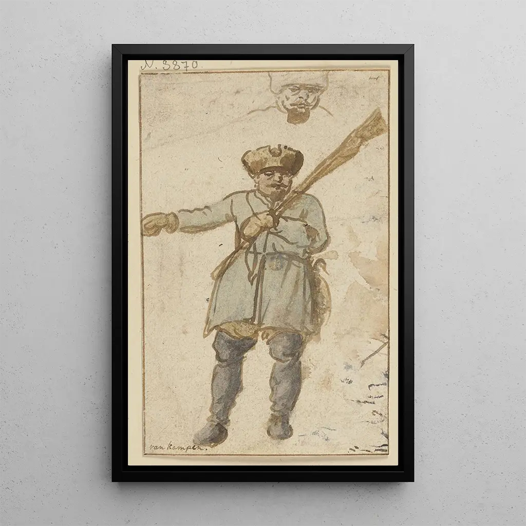 Maleri En jæger med gevær og pelsmütte - Hendrick Avercamp | Kunsttryk