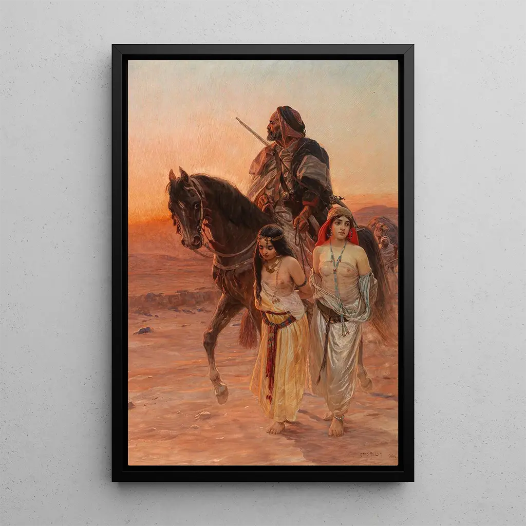 Kunsttrykket af "En caravane" er et ideelt dekorativt stykke til at berige dit hjem, uanset om det er i stuen, på kontoret eller i soveværelset. Dets kunsttrykskvalitet sikrer en trofast gengivelse af farver og detaljer i det originale værk, hvilket tilføjer et strejf af eksotisme til din indretning. Dette fængende lærred tiltrækker opmærksomhed og vækker nysgerrighed, hvilket gør det til et fremragende samtaleemne. Ved at integrere dette lærred i dit rum inviterer du ikke kun til orientalismens skønhed, men også til en atmosfære af rejse og flugt.